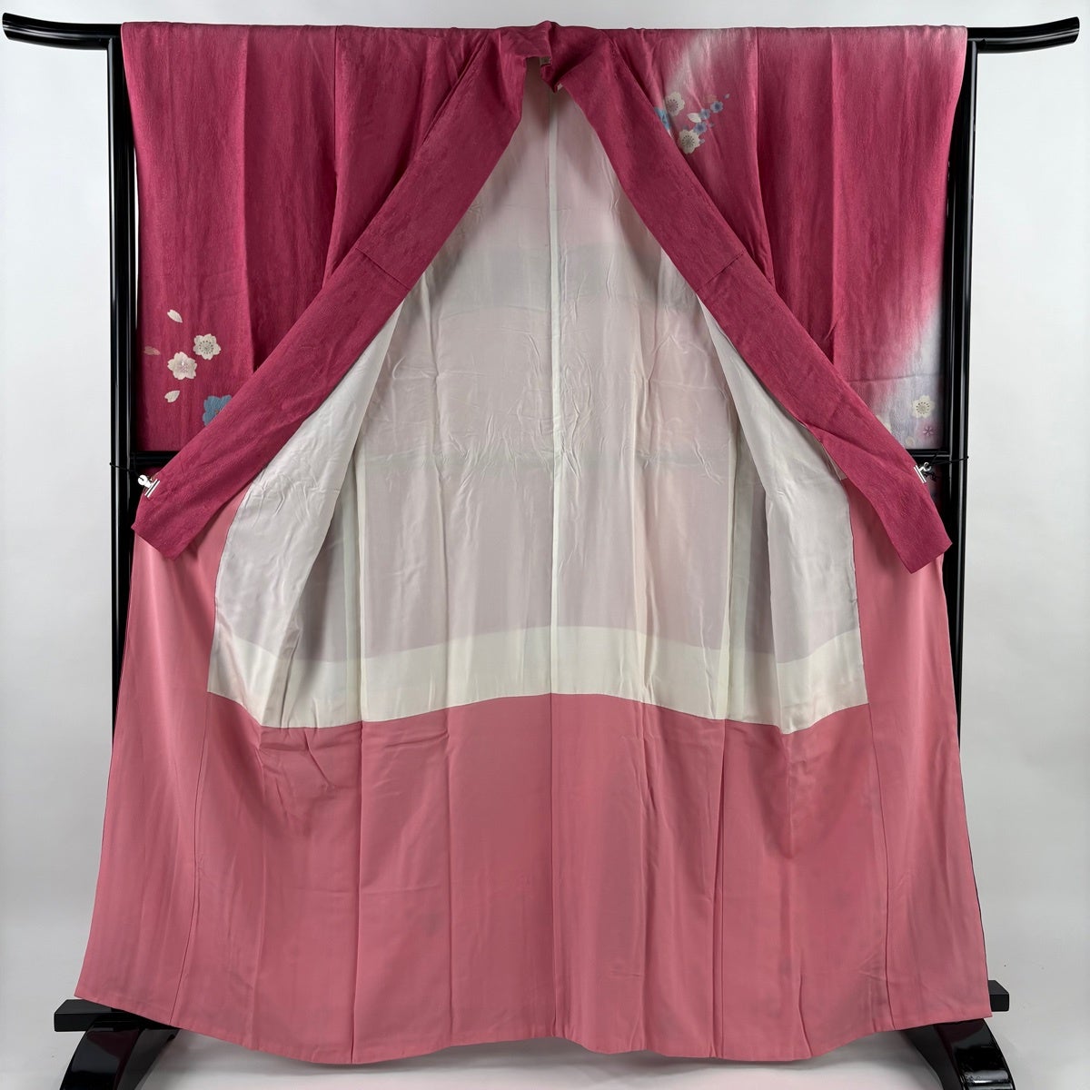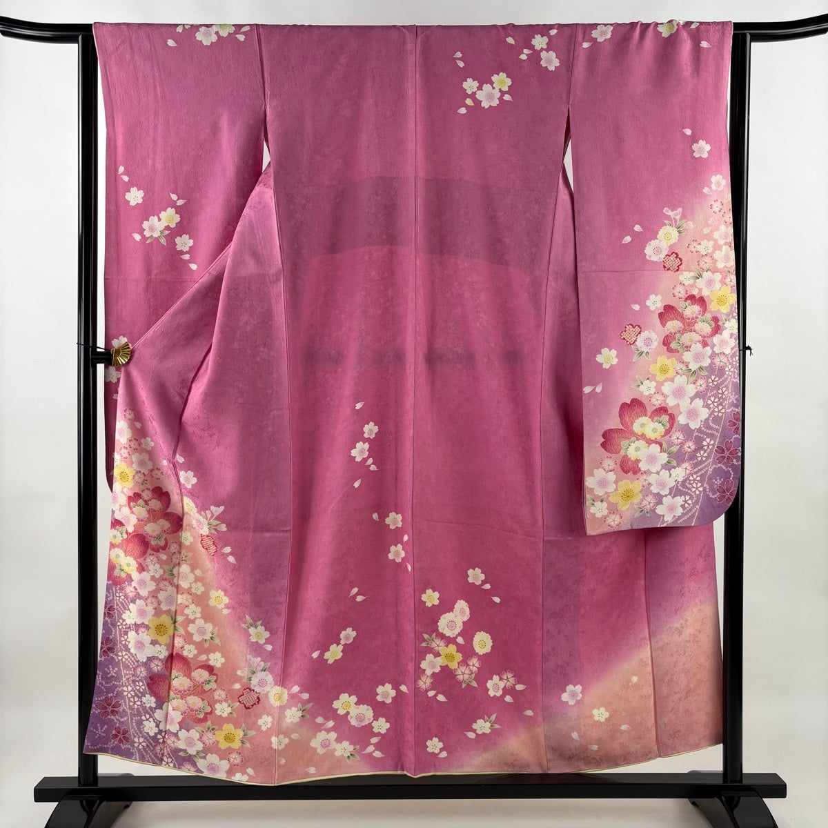 振袖 身丈164cm 裄丈65cm M 袷 桜 花弁 金通し 金彩 濃ピンク 正絹 名品