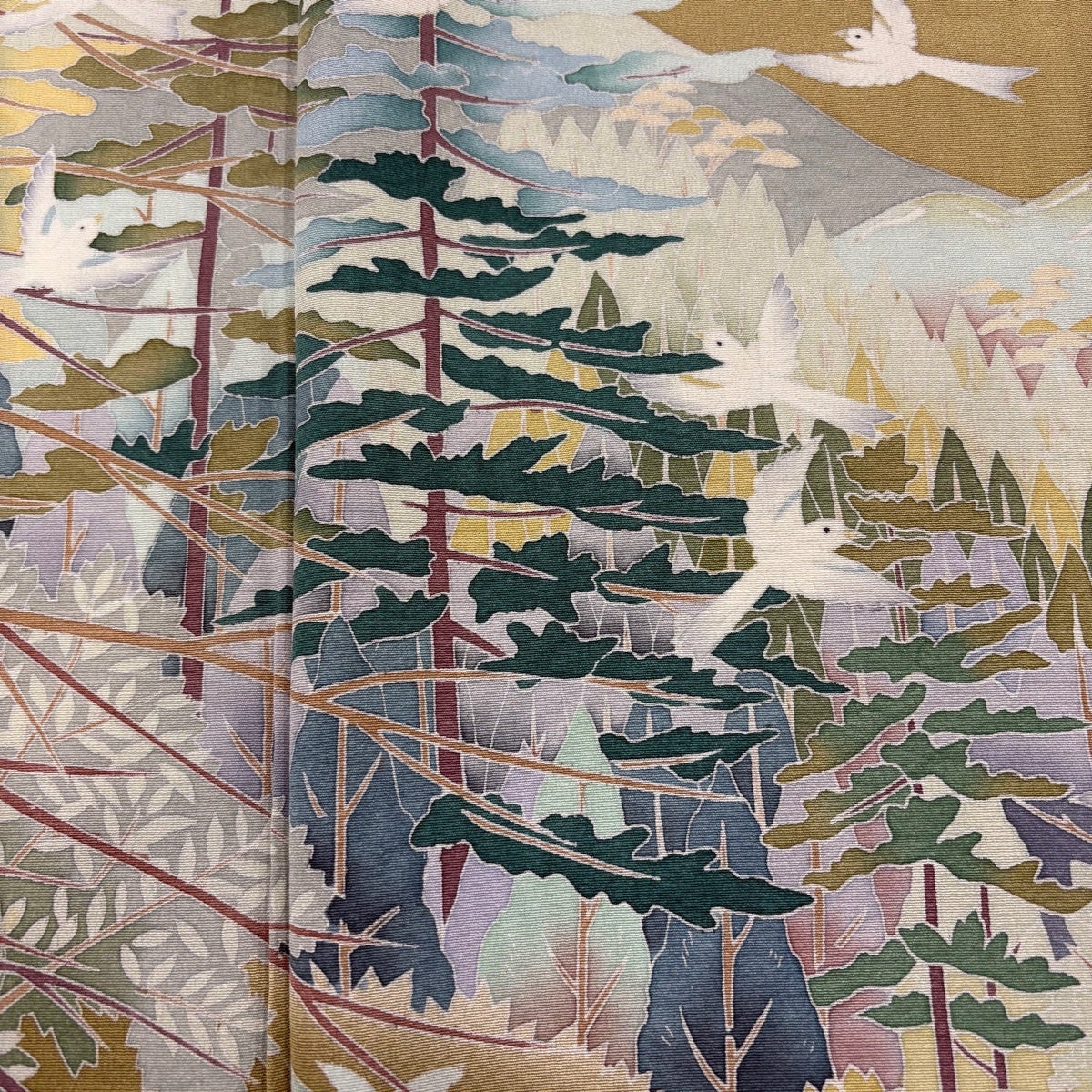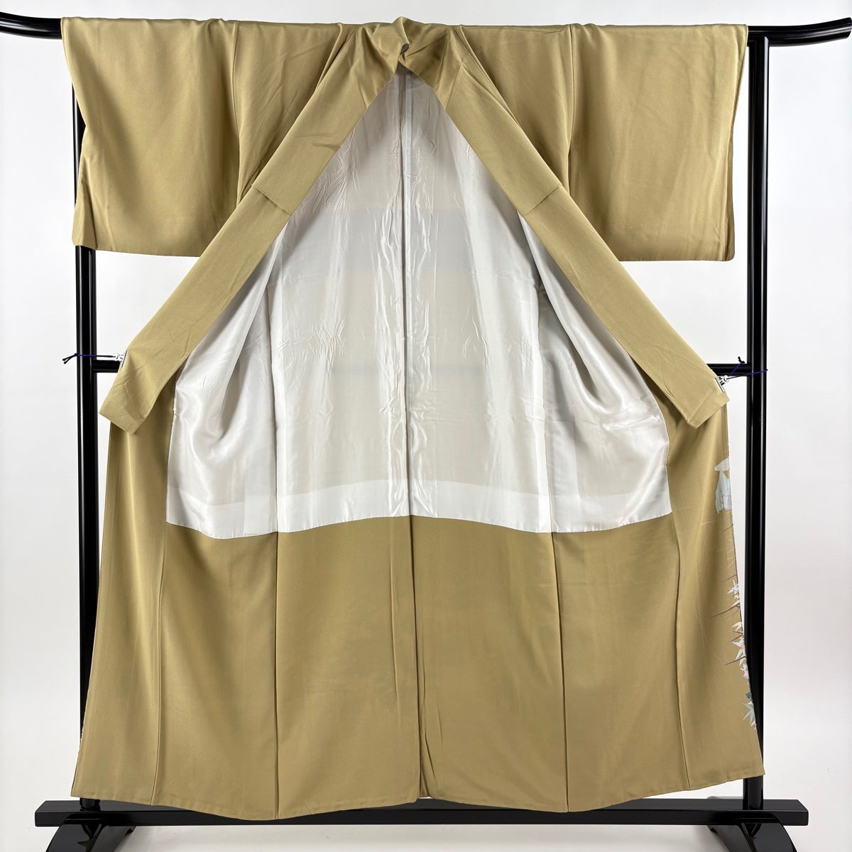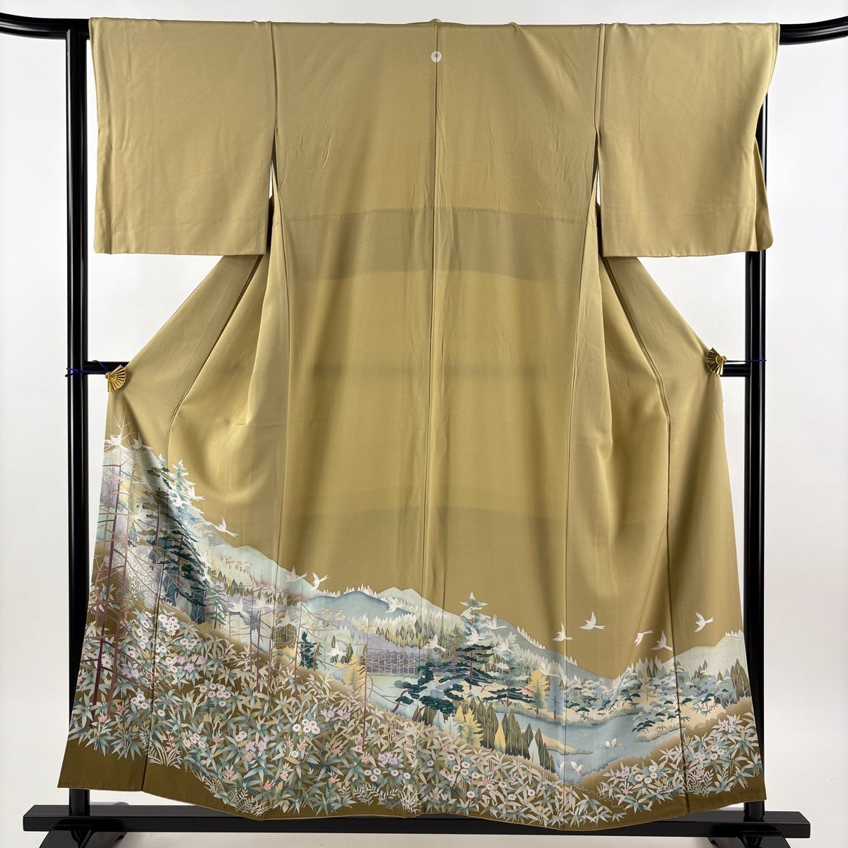 色留袖 身丈154cm 裄丈66cm M 袷 樹木 鳥 ベージュ 正絹 秀品 一つ紋