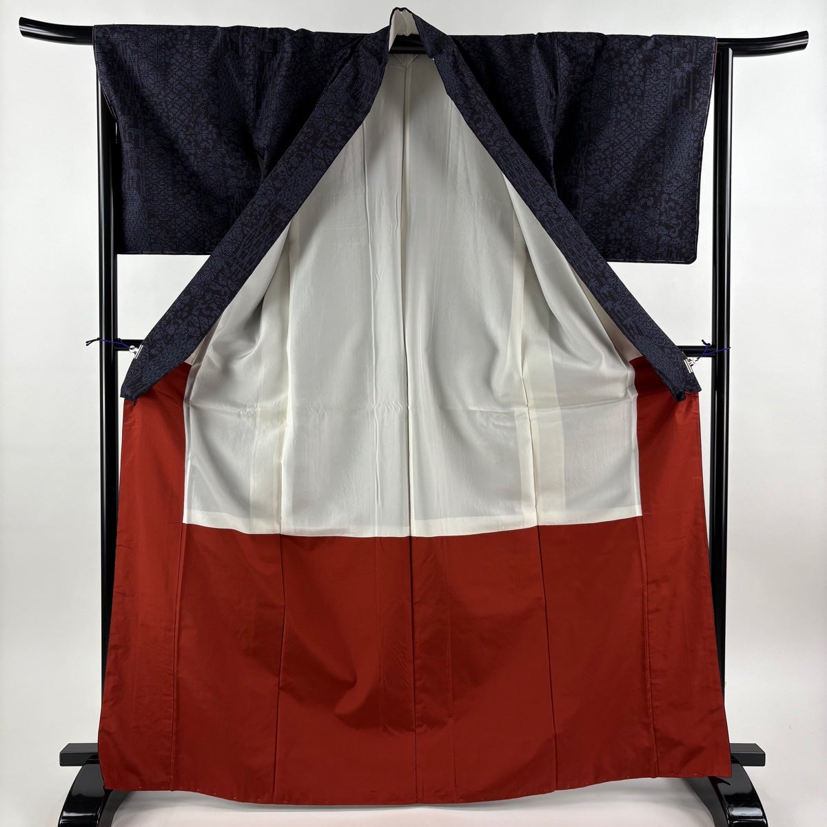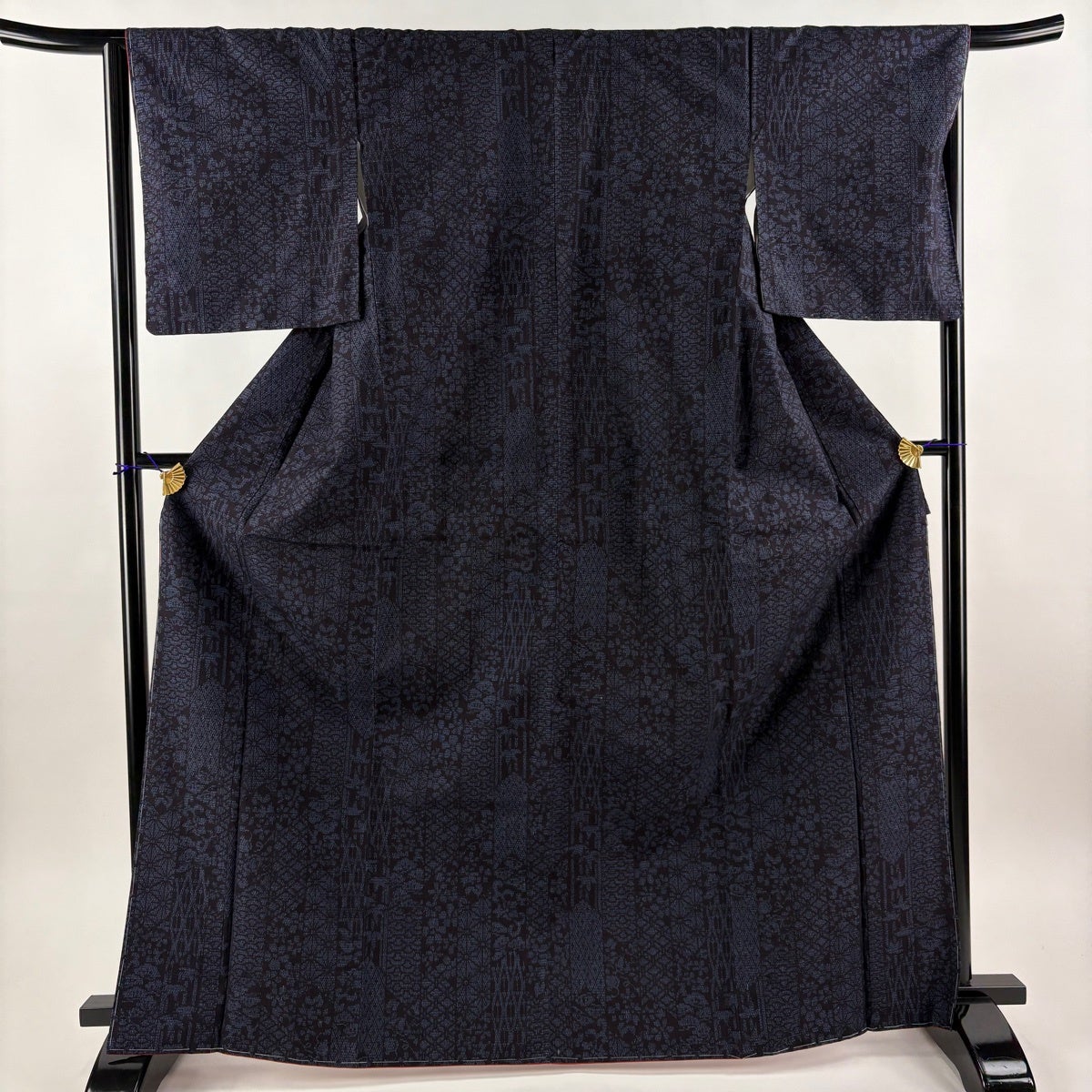 小紋 身丈159cm 裄丈62.5cm S 袷 幾何学模様 地紋 絞り 濃紺 正絹 優品
