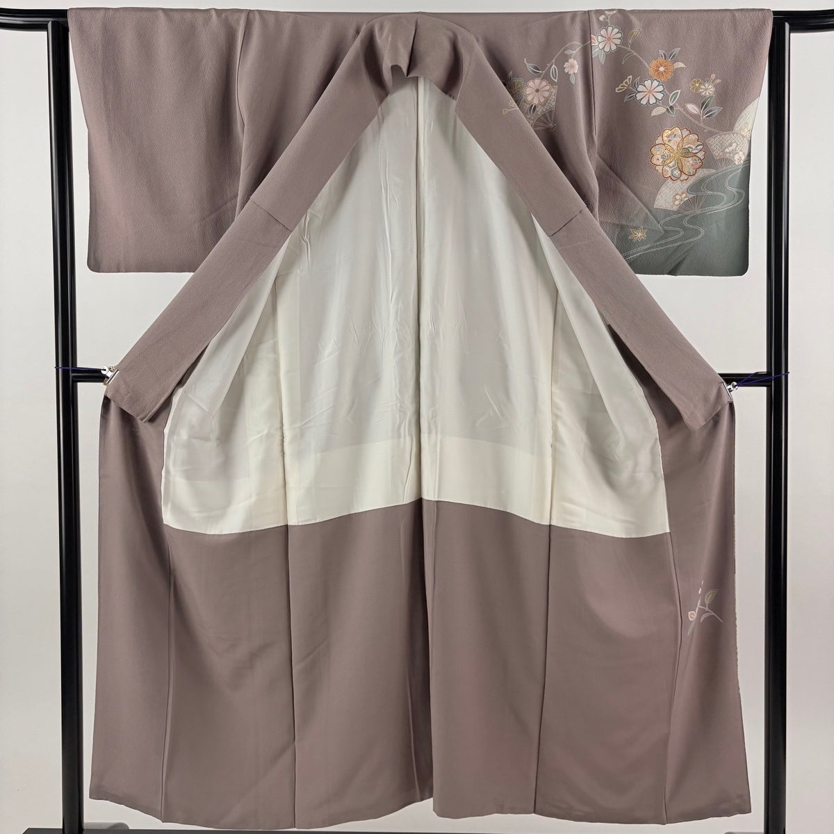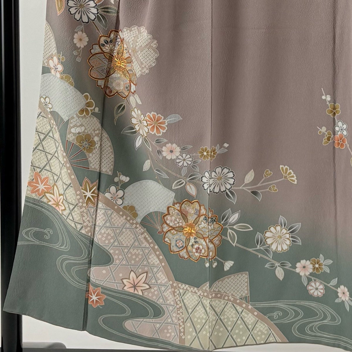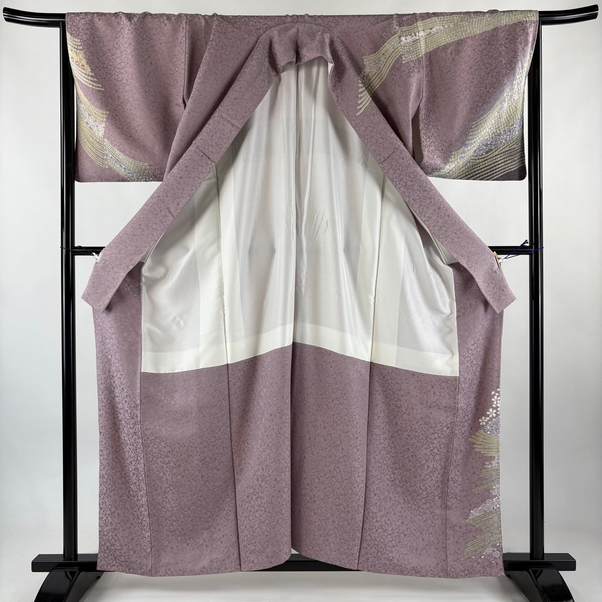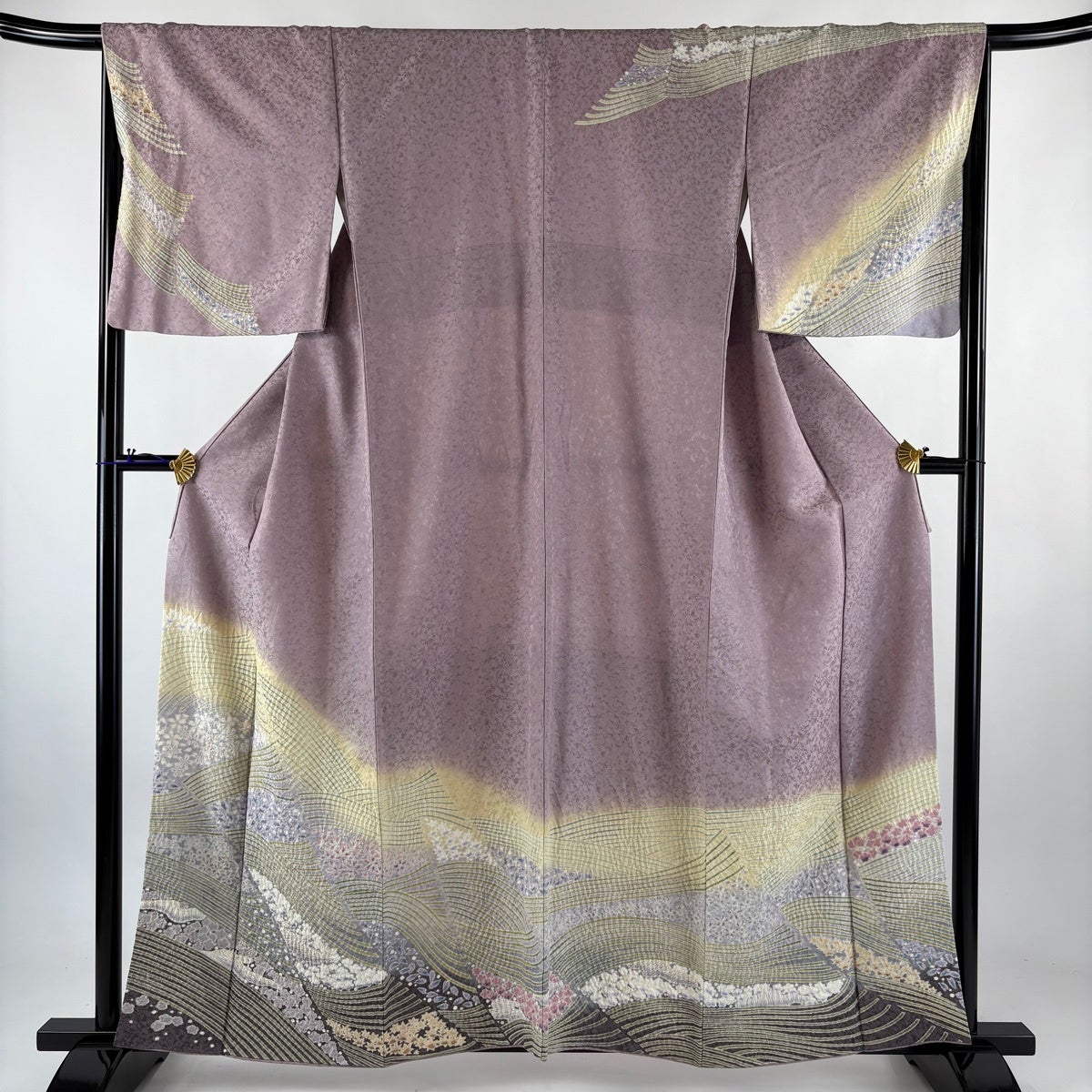 訪問着 身丈151cm 裄丈63cm S 袷 桜 扇 金糸 金彩 灰紫 正絹 秀品 一つ紋