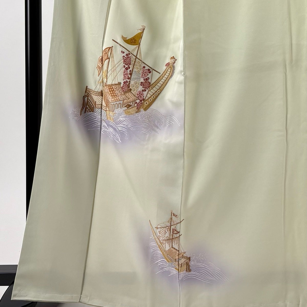 付下げ 身丈165cm 裄丈63.5cm S 袷 船 波頭 刺繍 ぼかし 薄緑 正絹 秀品
