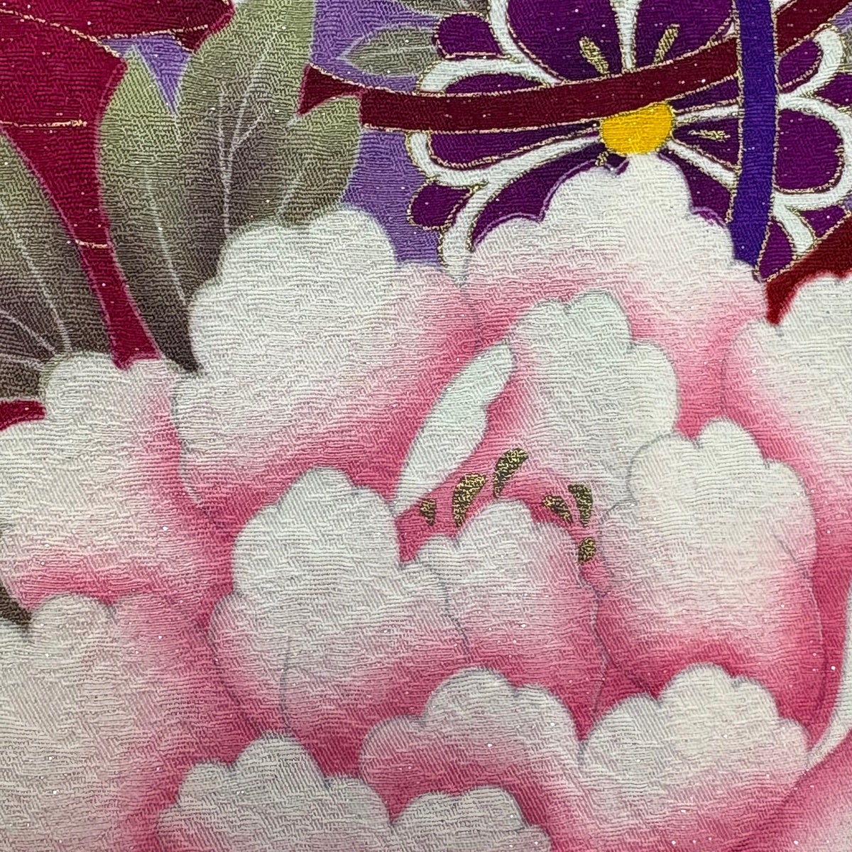 振袖 身丈163cm 裄丈66cm M 袷 蝶 草花 絞り 金彩 紫 正絹 秀品