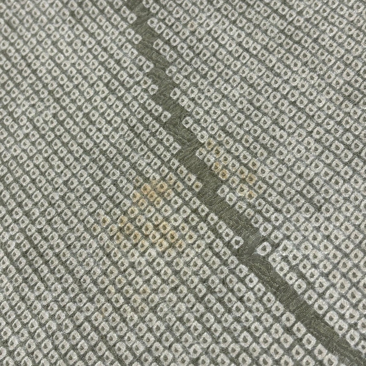 小紋 身丈151cm 裄丈63cm S 袷 幾何学模様 総絞り 灰緑 正絹 秀品