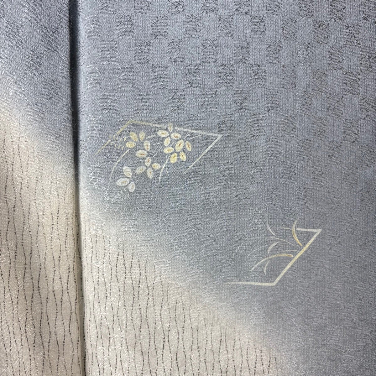 訪問着 身丈156cm 裄丈64cm M 袷 草花 鳥 金彩 染め分け 灰茶 正絹 優品