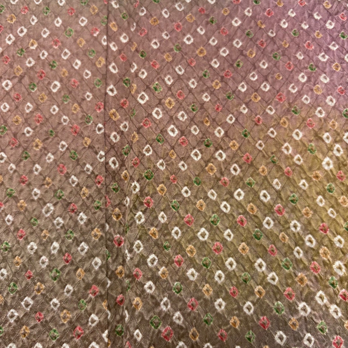 小紋 身丈154.5cm 裄丈61.5cm S 袷 幾何学 葉柄 薄茶色 正絹 秀品