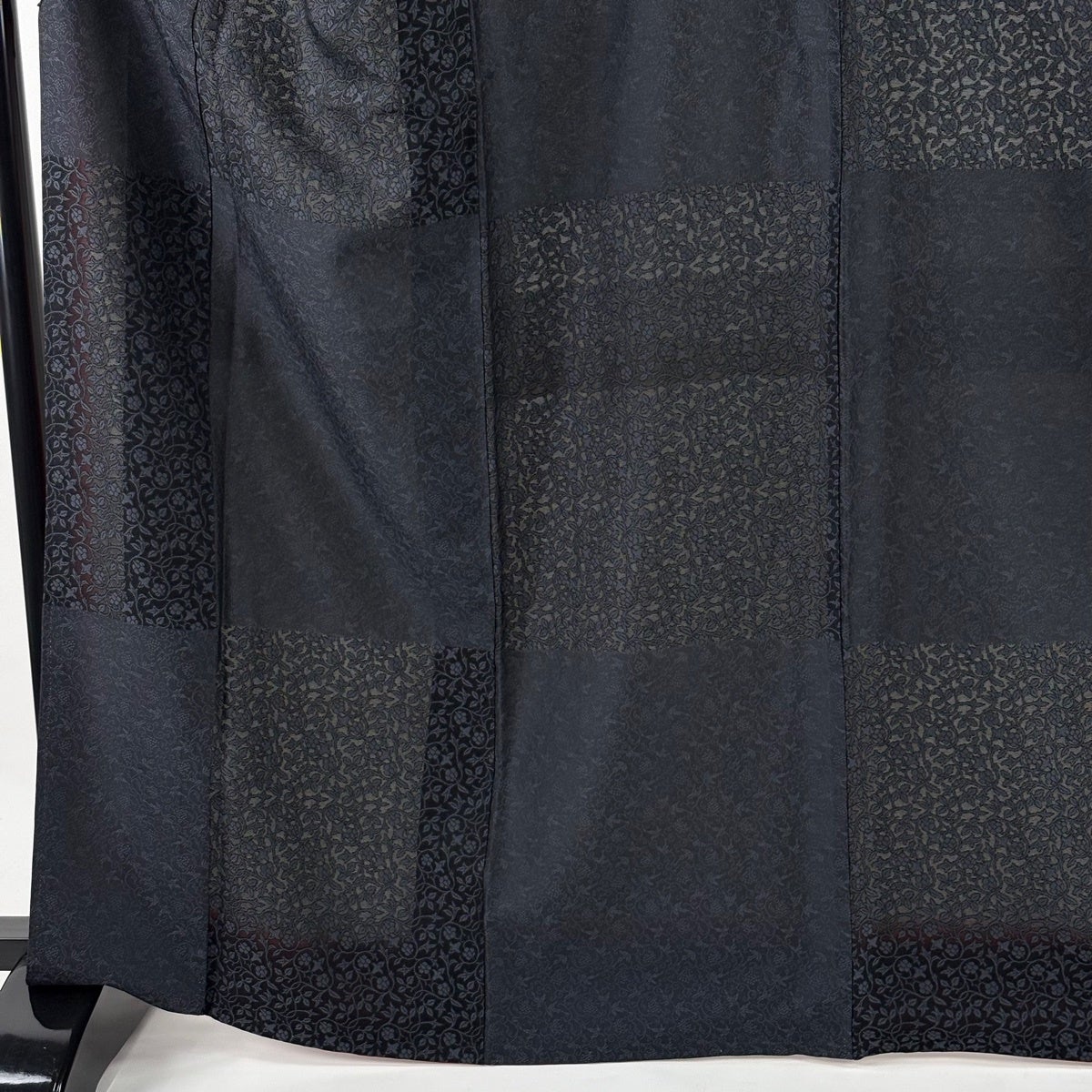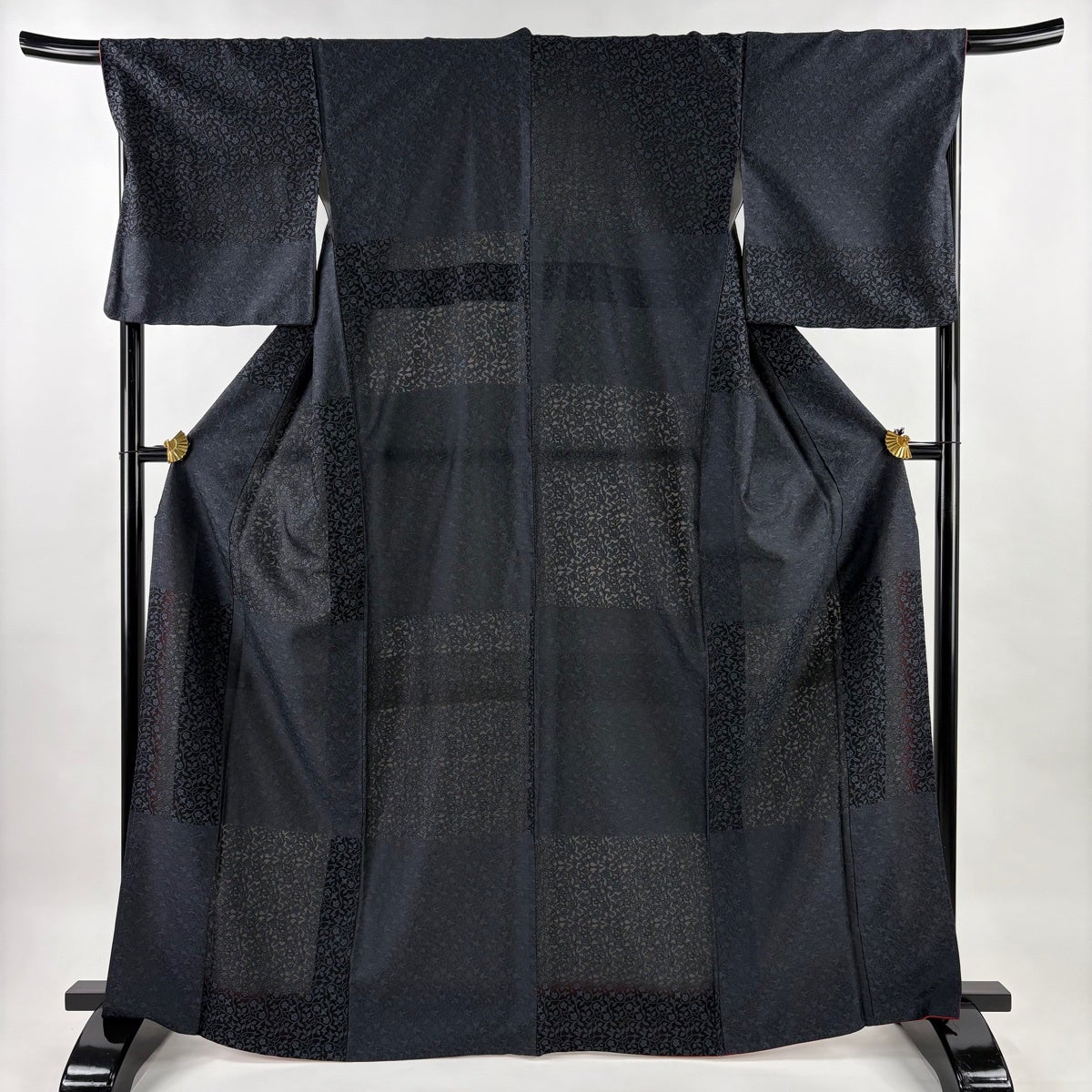 【美品】 紬 身丈150.5cm 裄丈64cm M 袷 幾何学 墨色 正絹 秀品
