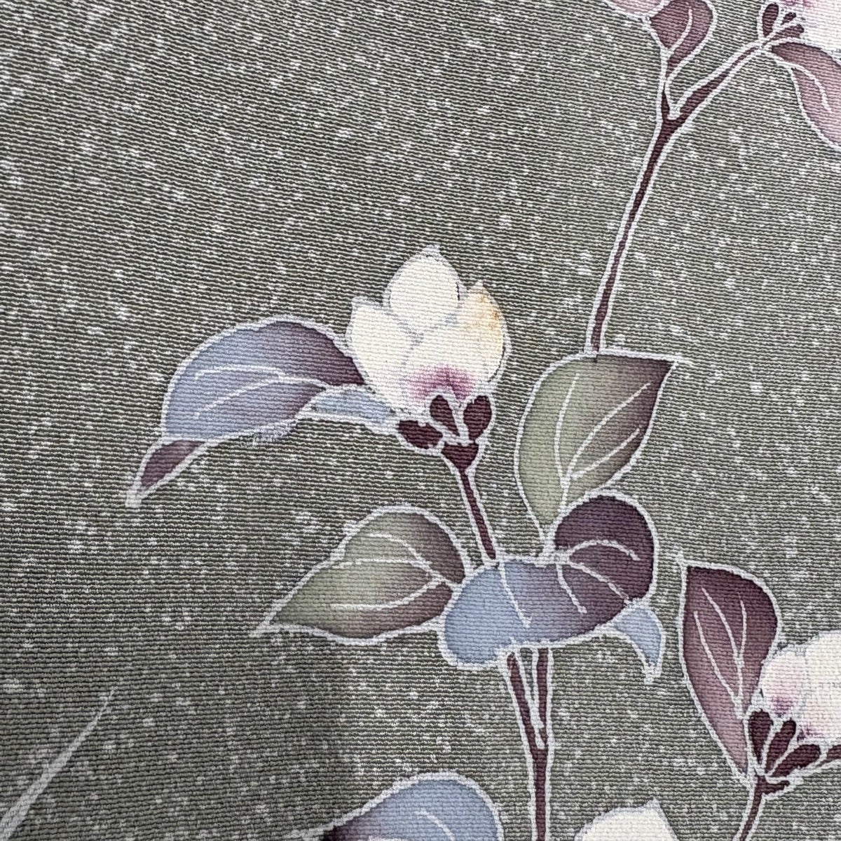 付下げ 身丈154cm 裄丈64.5cm M 袷 霞 ぼかし 茶緑色 正絹 秀品