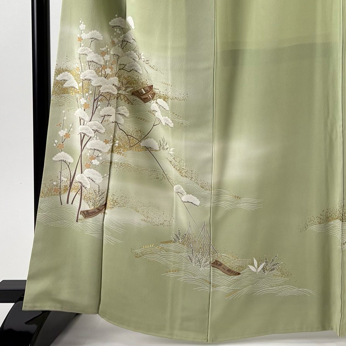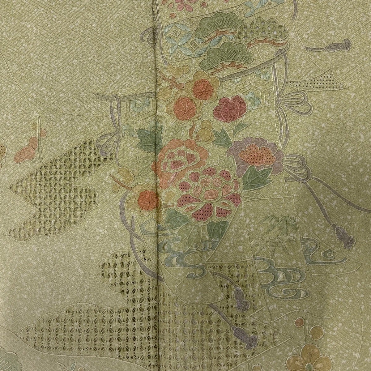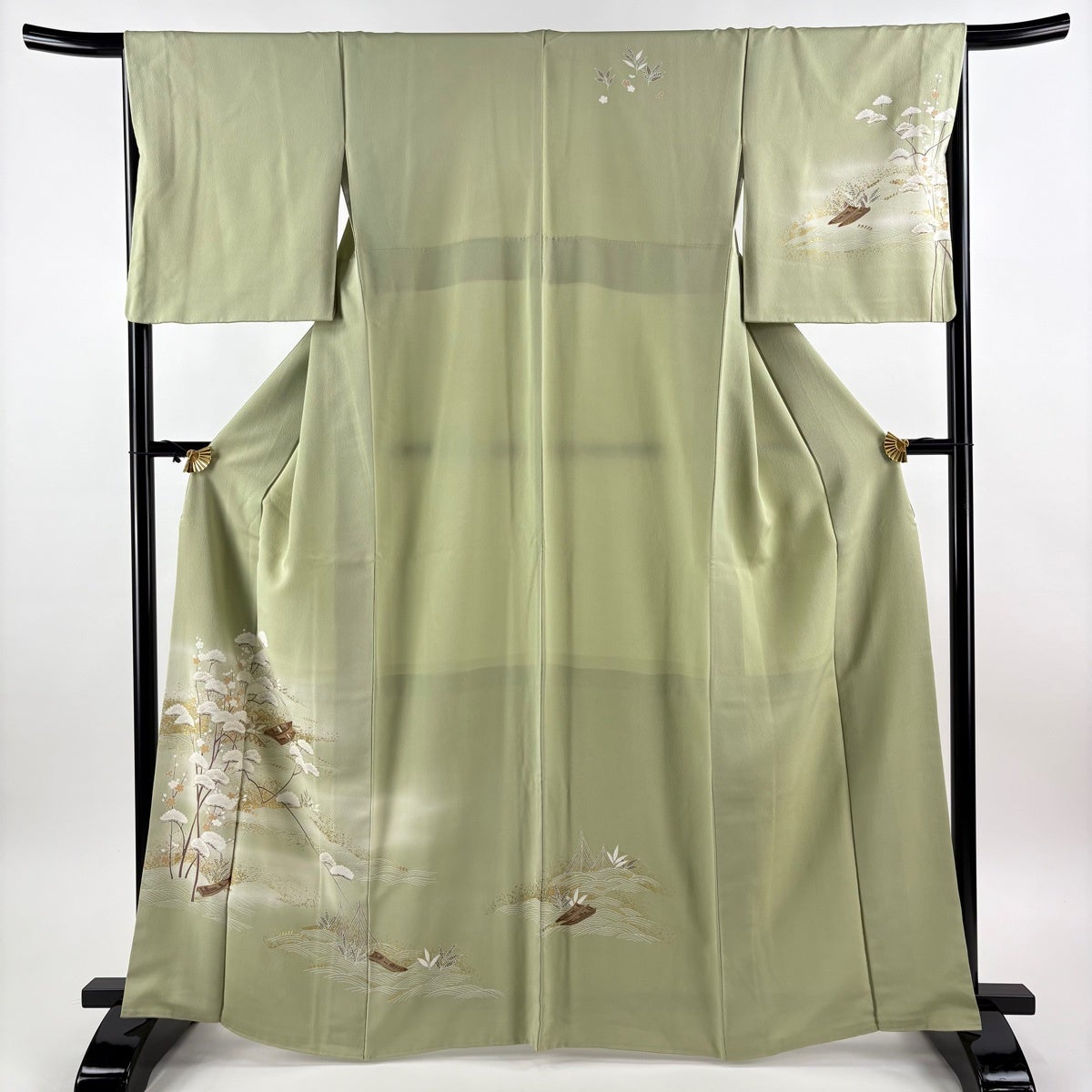 付下げ 身丈154cm 裄丈63cm S 袷 几帳 松竹梅 刺繍 ぼかし 薄緑 正絹 秀品