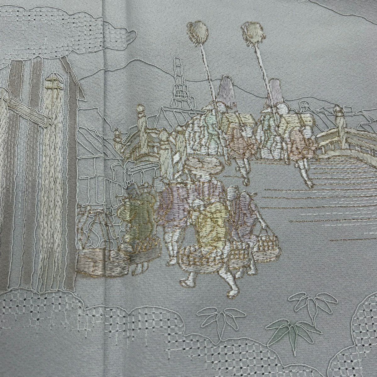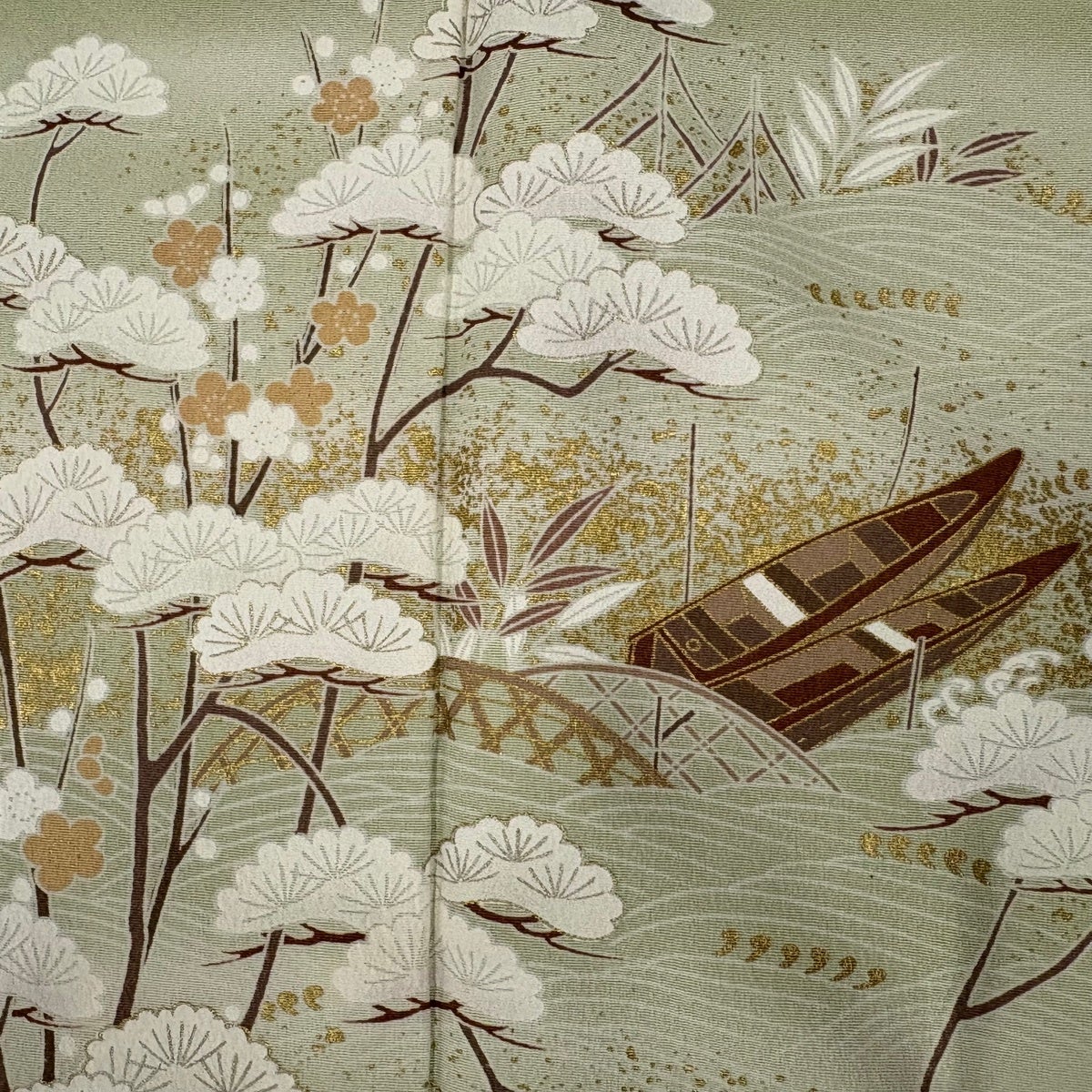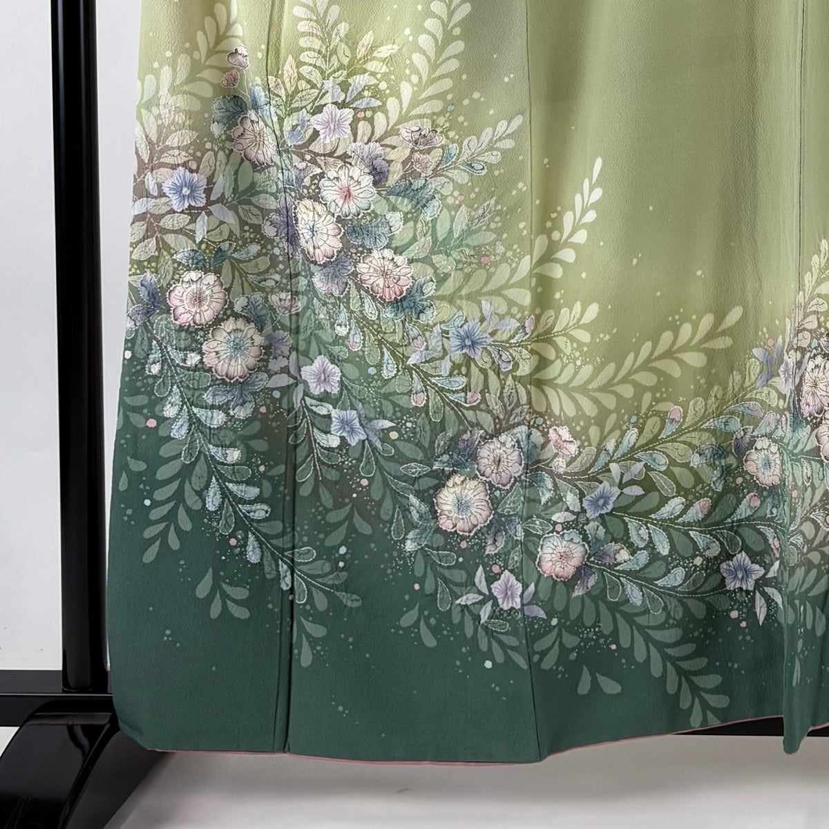 付下げ 身丈154cm 裄丈63cm S 袷 几帳 松竹梅 刺繍 ぼかし 薄緑 正絹 秀品