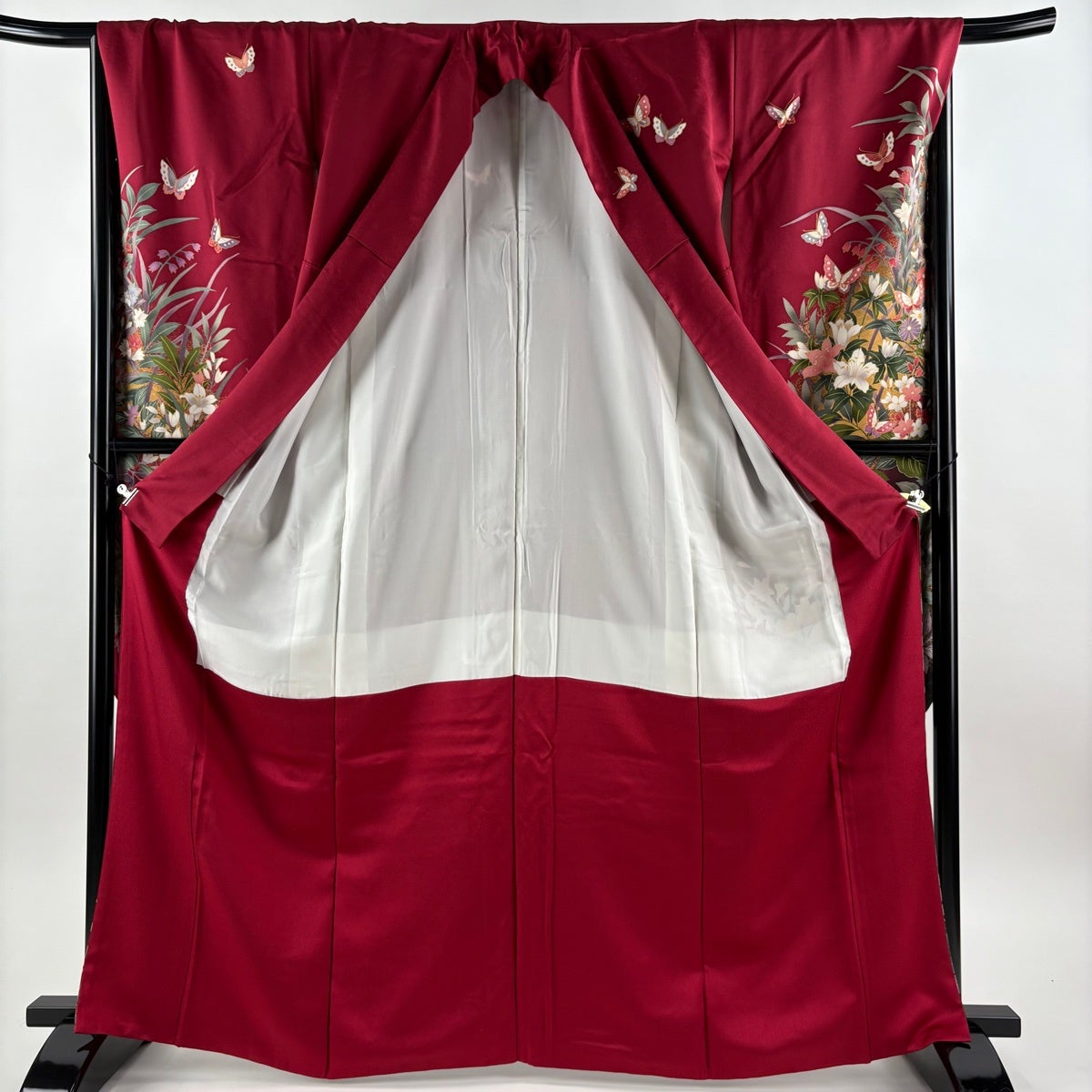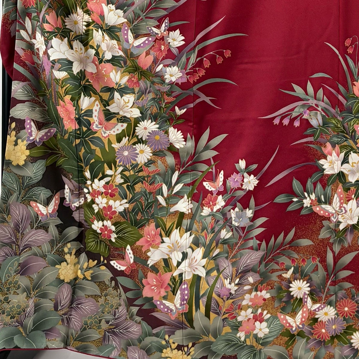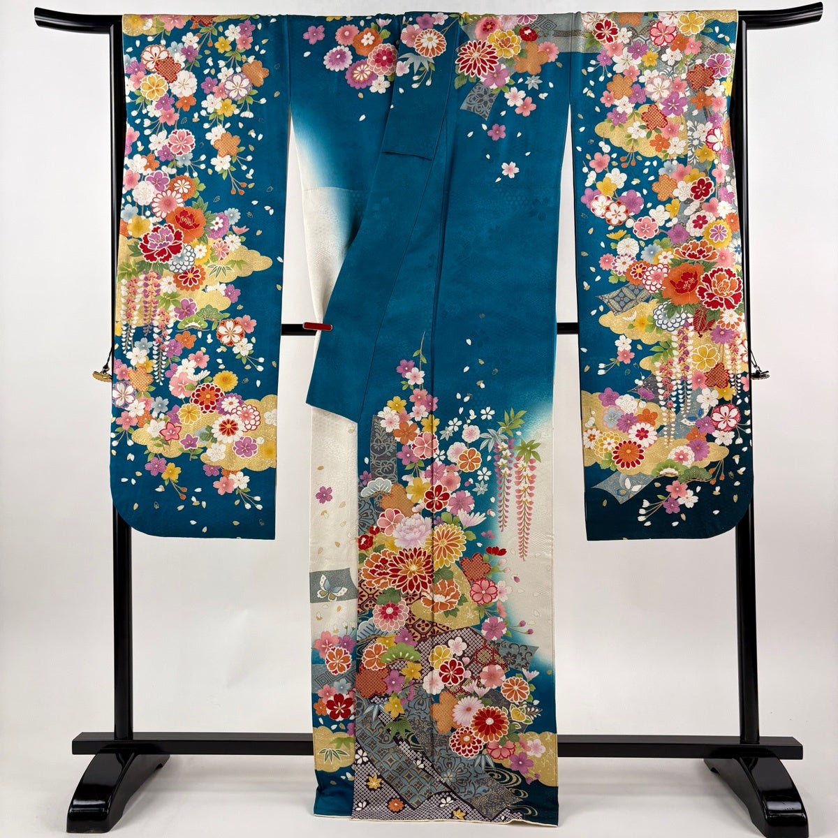 振袖 身丈161.5cm 裄丈66.5cm M 袷 蝶 枝垂れ桜 金銀彩 金糸 青緑 正絹 秀品