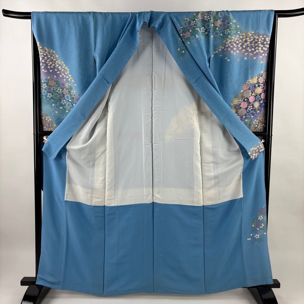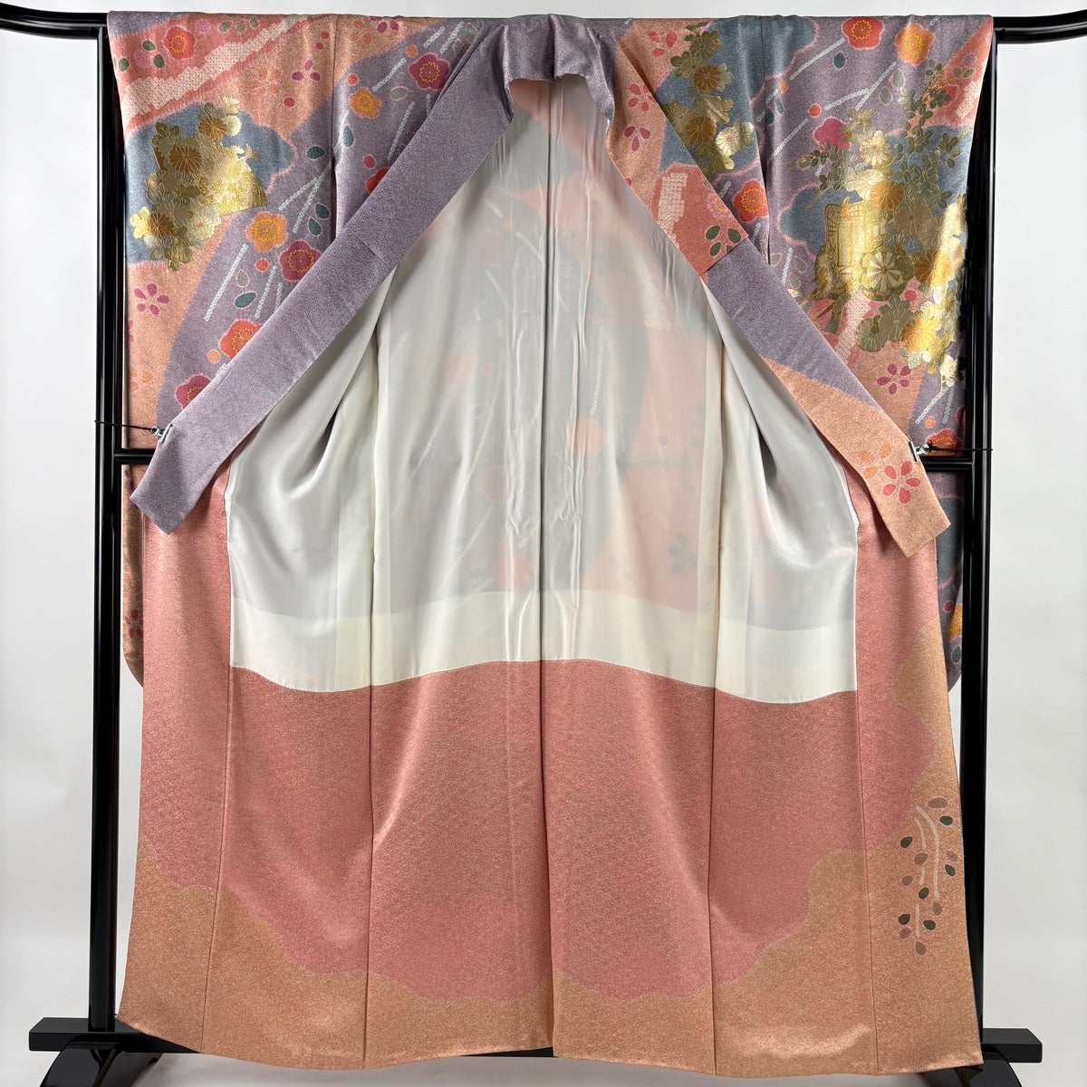 振袖 身丈160cm 裄丈66cm M 袷 御所車 菊 金銀彩 染め分け 薄紫 正絹 名品