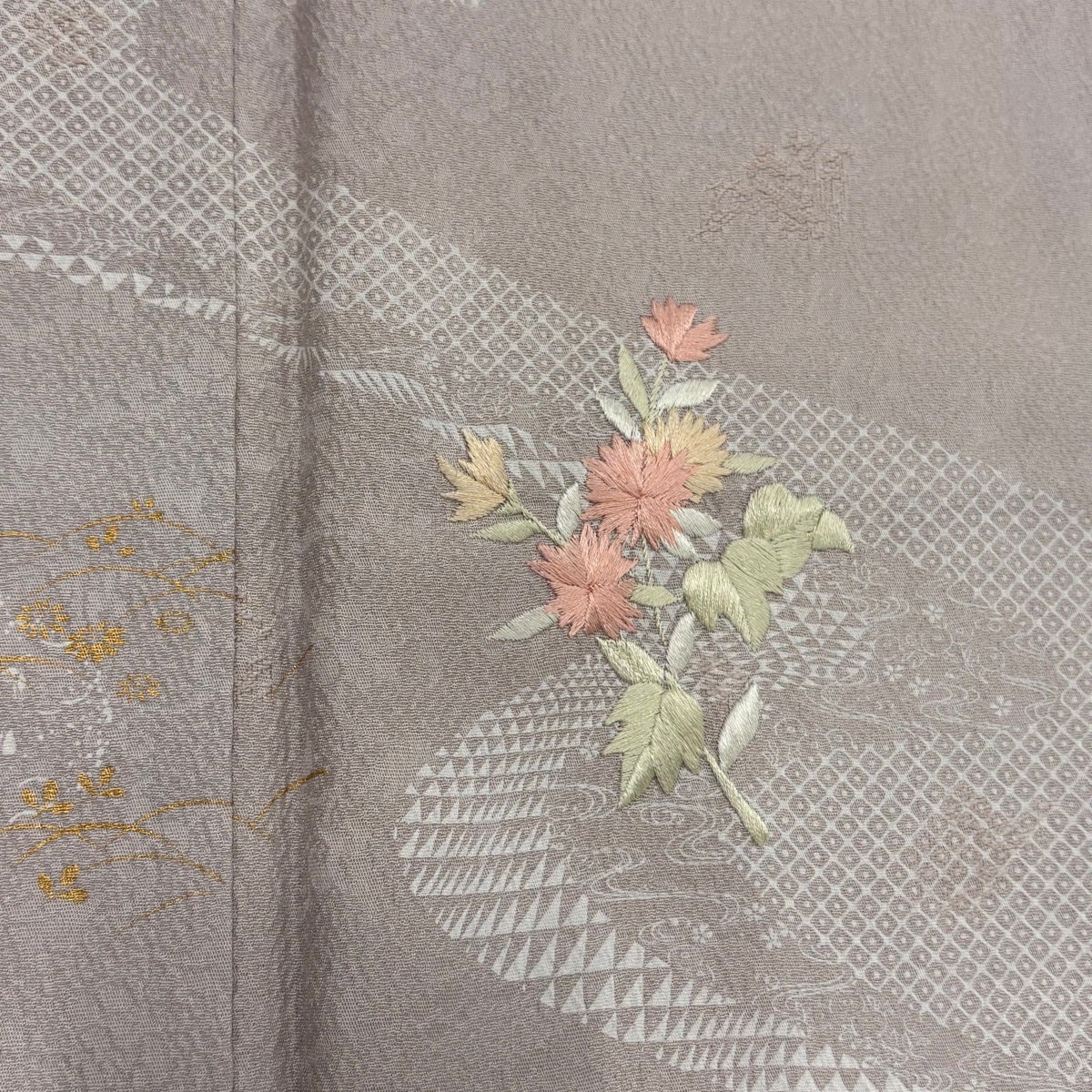 訪問着 身丈157cm 裄丈61.5cm S 袷 草花 霞 刺繍 金彩 薄小豆 正絹 秀品