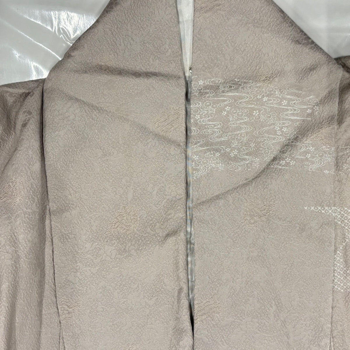 振袖 身丈160cm 裄丈62cm S 袷 草花 波頭 金糸 金彩 ベージュ 正絹 秀品