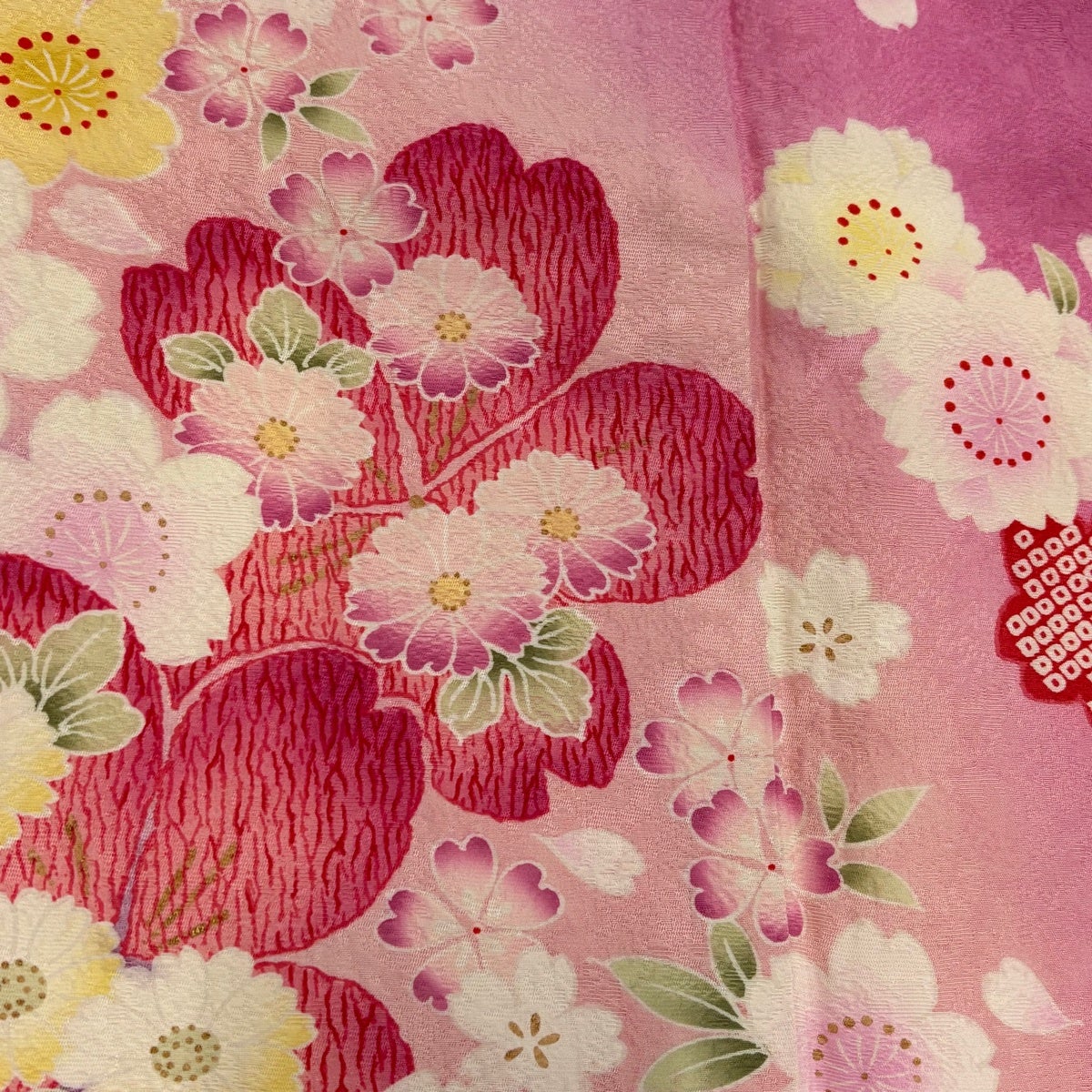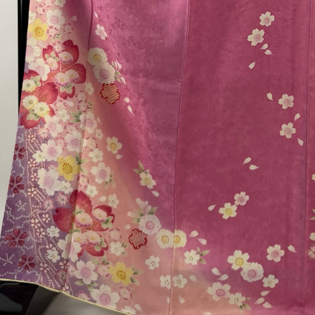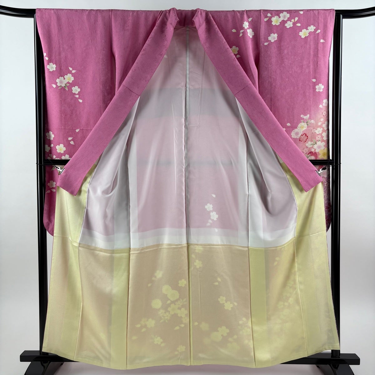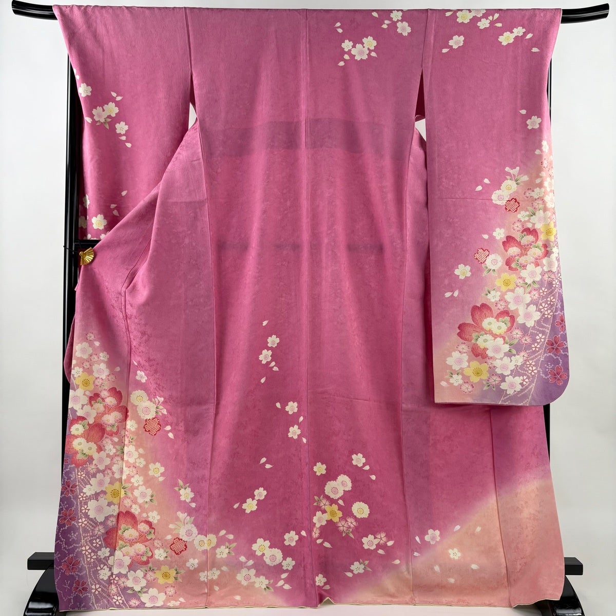 振袖 身丈167.5cm 裄丈68cm L 袷 桜 菊 金彩 ぼかし ピンク 正絹 秀品