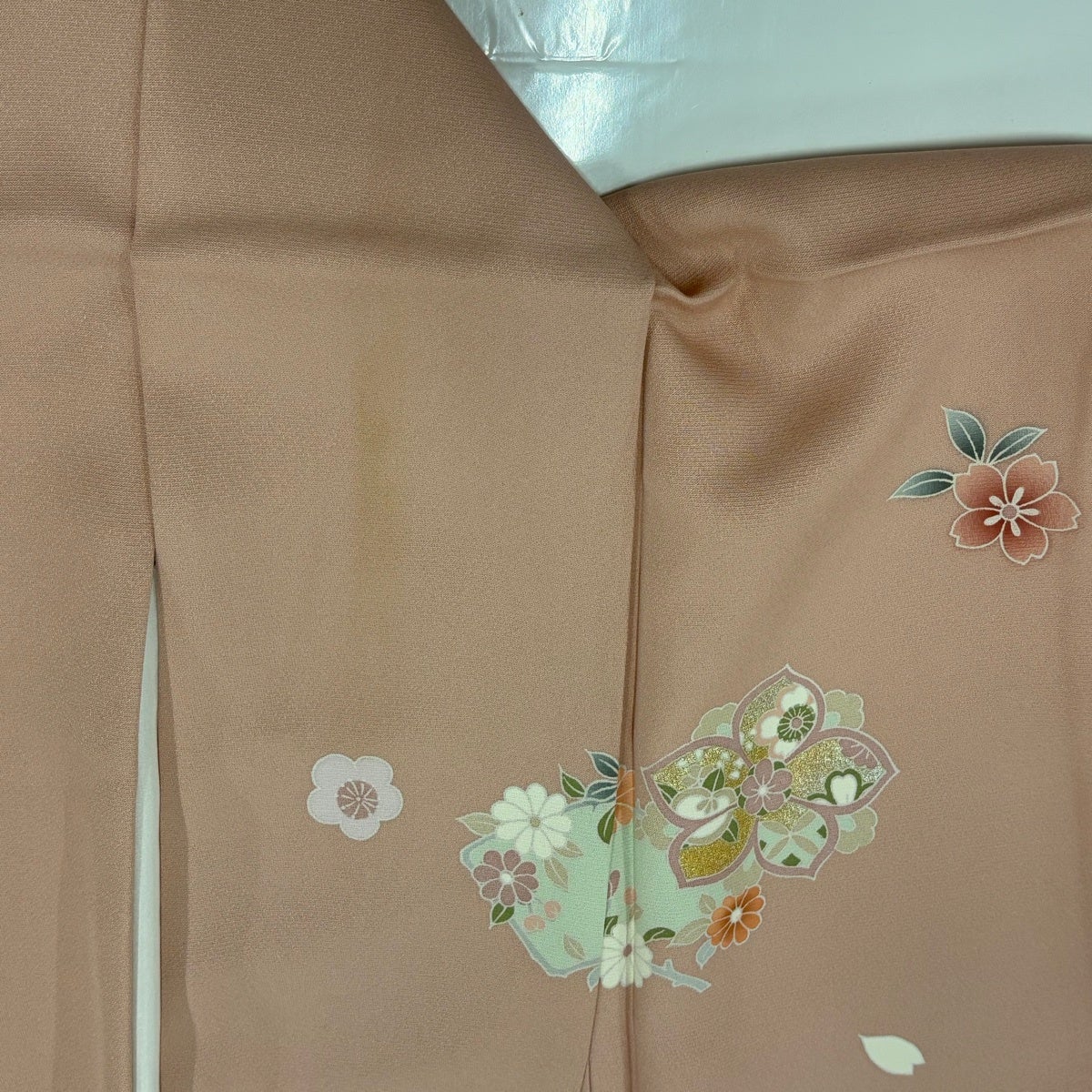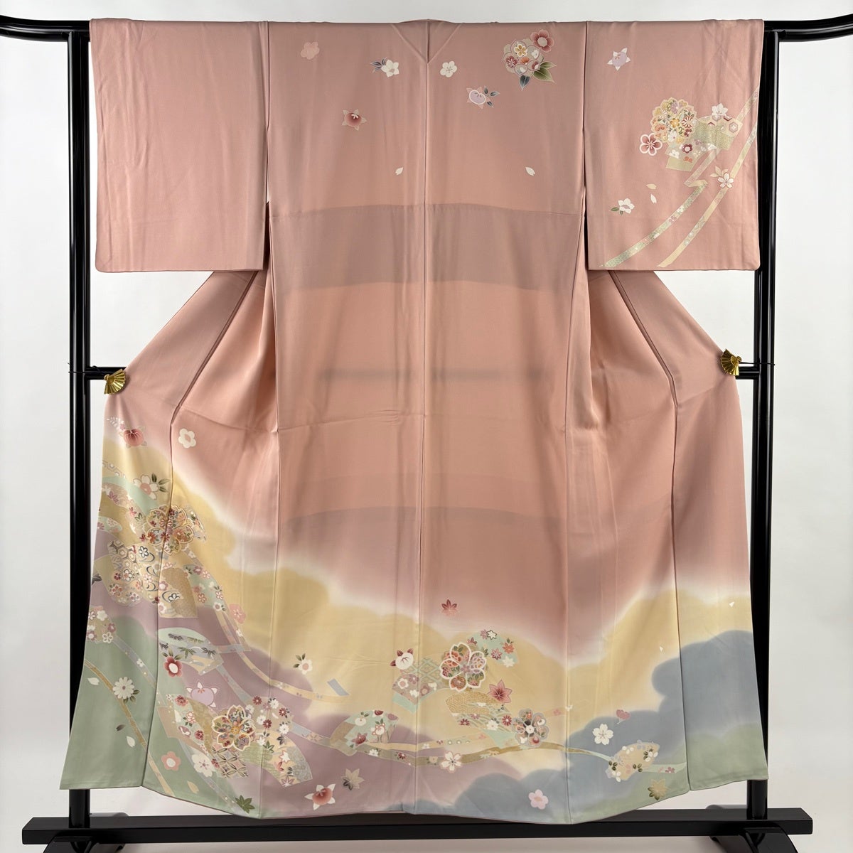 振袖 身丈162cm 裄丈65cm M 袷 牡丹 桜 金彩 ぼかし 薄ピンク 正絹 秀品
