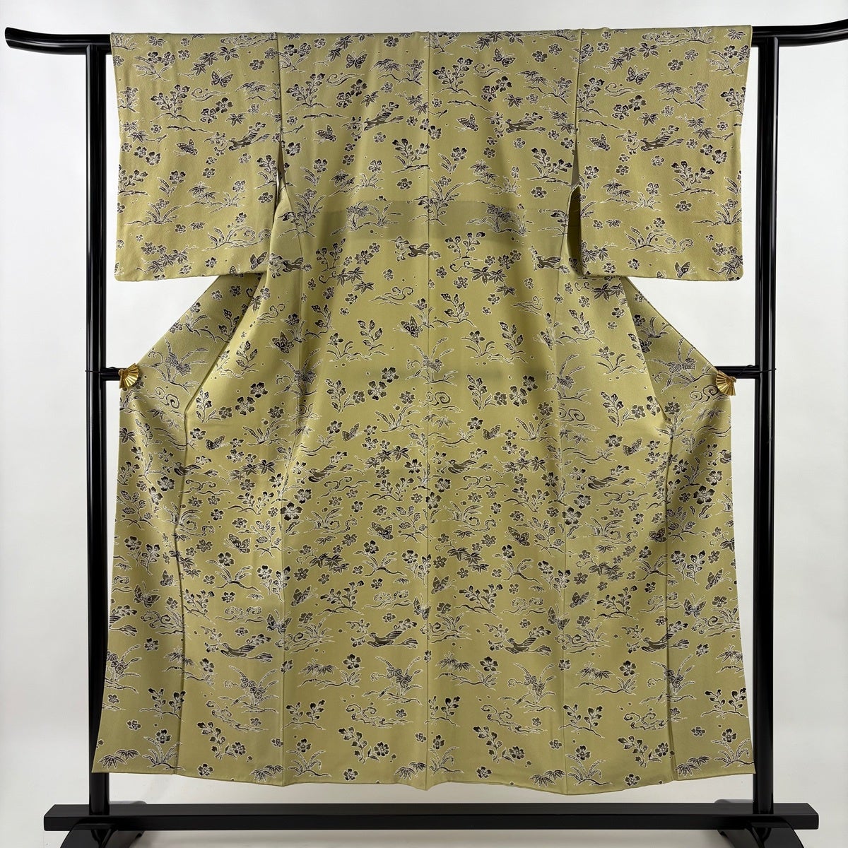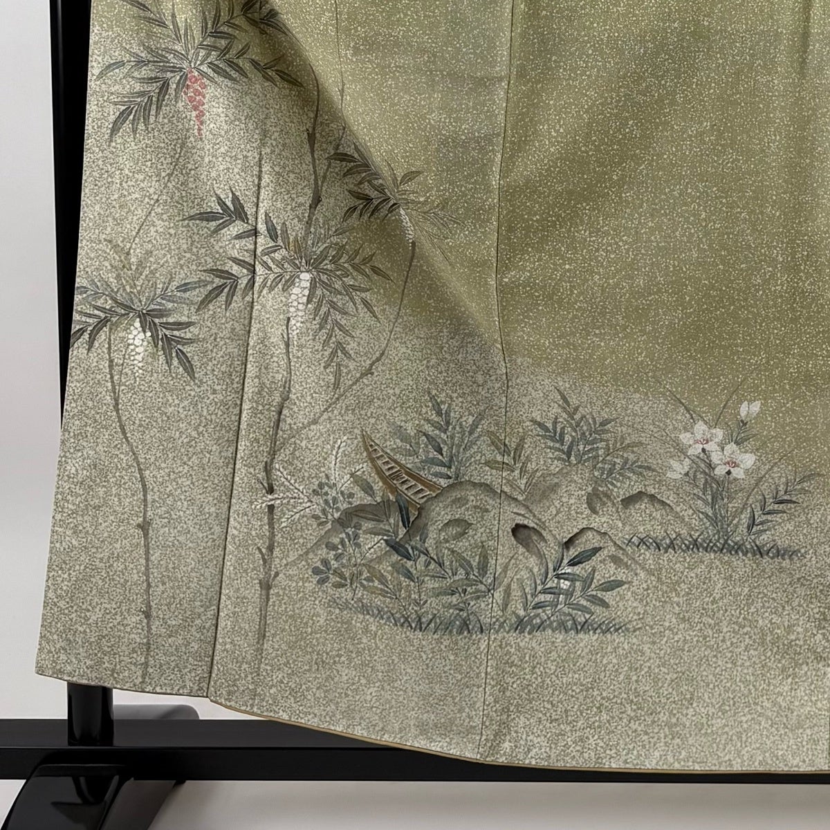 付下げ 身丈155cm 裄丈62.5cm S 袷 草花 芝 螺鈿 金銀彩 茶緑色 正絹 秀品