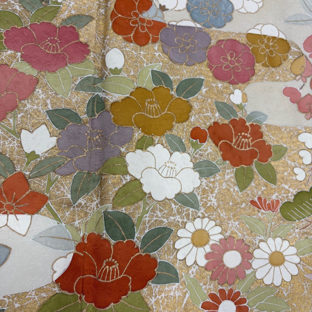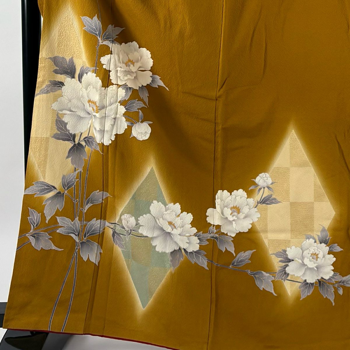 振袖 身丈165.5cm 裄丈63cm S 袷 牡丹 菱 金彩 ぼかし 黄土色 正絹 秀品