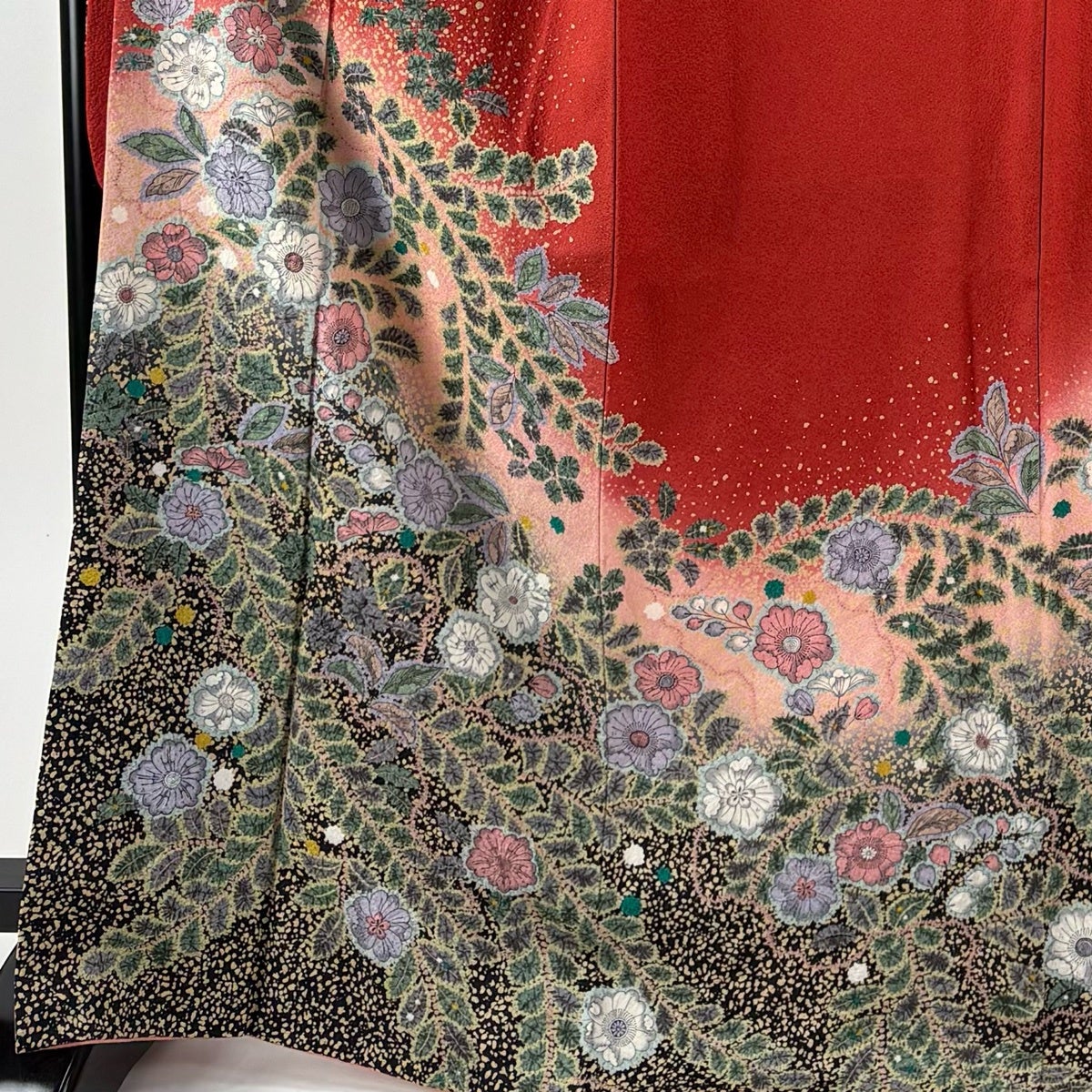 振袖 身丈163.5cm 裄丈65cm M 袷 菊 松竹梅 金銀彩 ぼかし 朱色 正絹 秀品