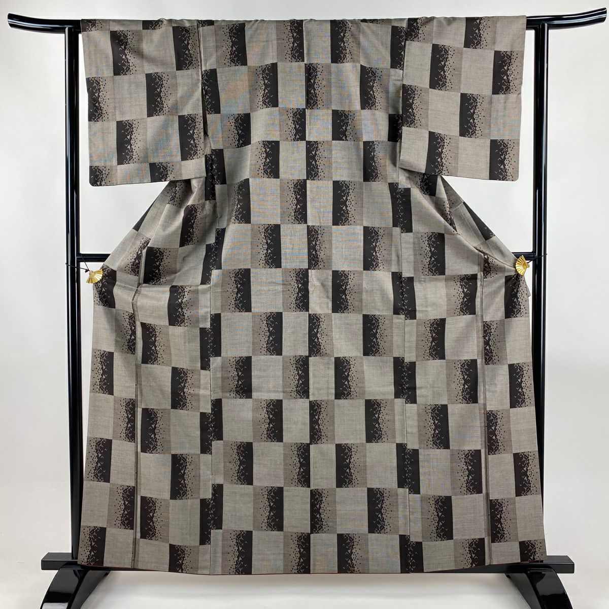 【美品】 紬 身丈158.5cm 裄丈65cm M 袷 幾何学模様 墨色 正絹 秀品
