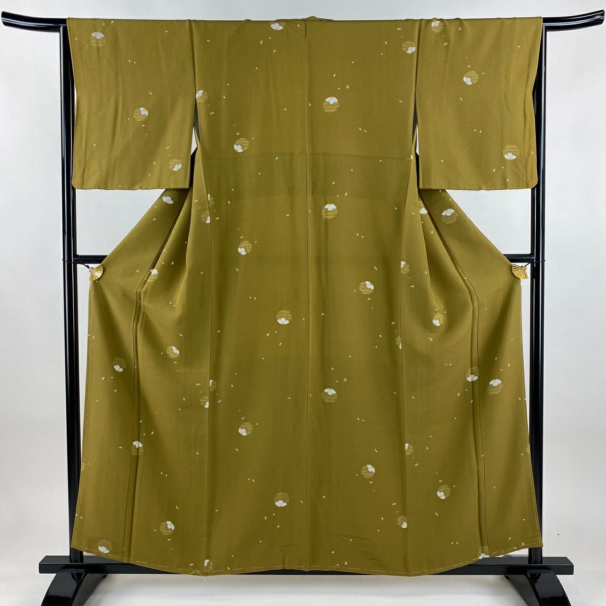 付下げ 身丈160cm 裄丈66.5cm M 袷 紬地 裾ぼかし 灰緑 正絹 秀品