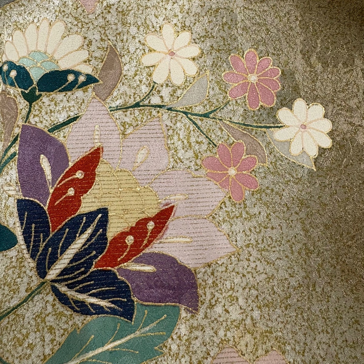 振袖 身丈168cm 裄丈66.5cm M 袷 御所車 草花 金糸 金彩 山吹茶色 正絹 秀品