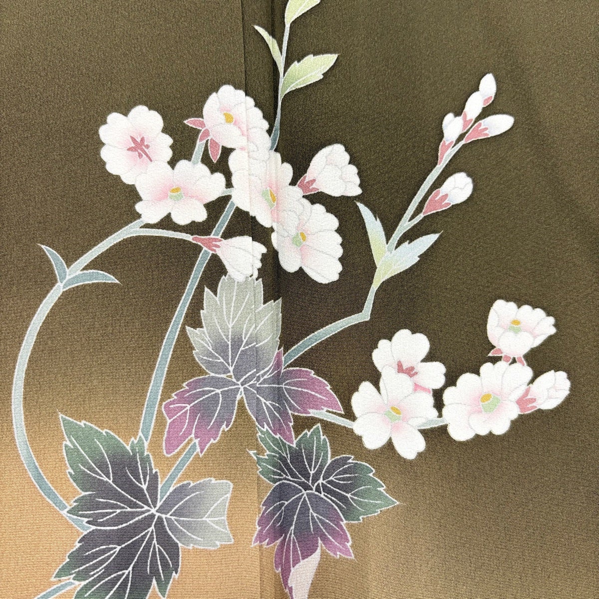 【美品】 訪問着 身丈162cm 裄丈65.5cm M 袷 草花 ぼかし 茶緑色 正絹 秀品