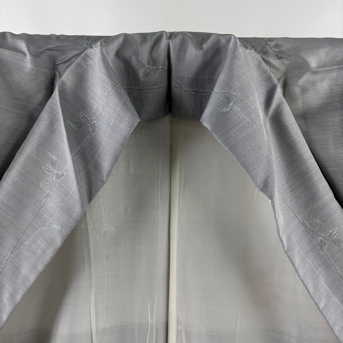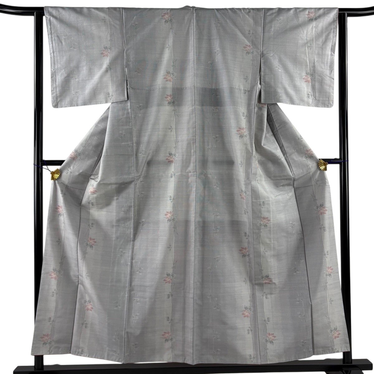 付下げ 身丈159.5cm 裄丈64cm M 袷 草花 雲文 絞り 灰白 正絹 秀品 一つ紋