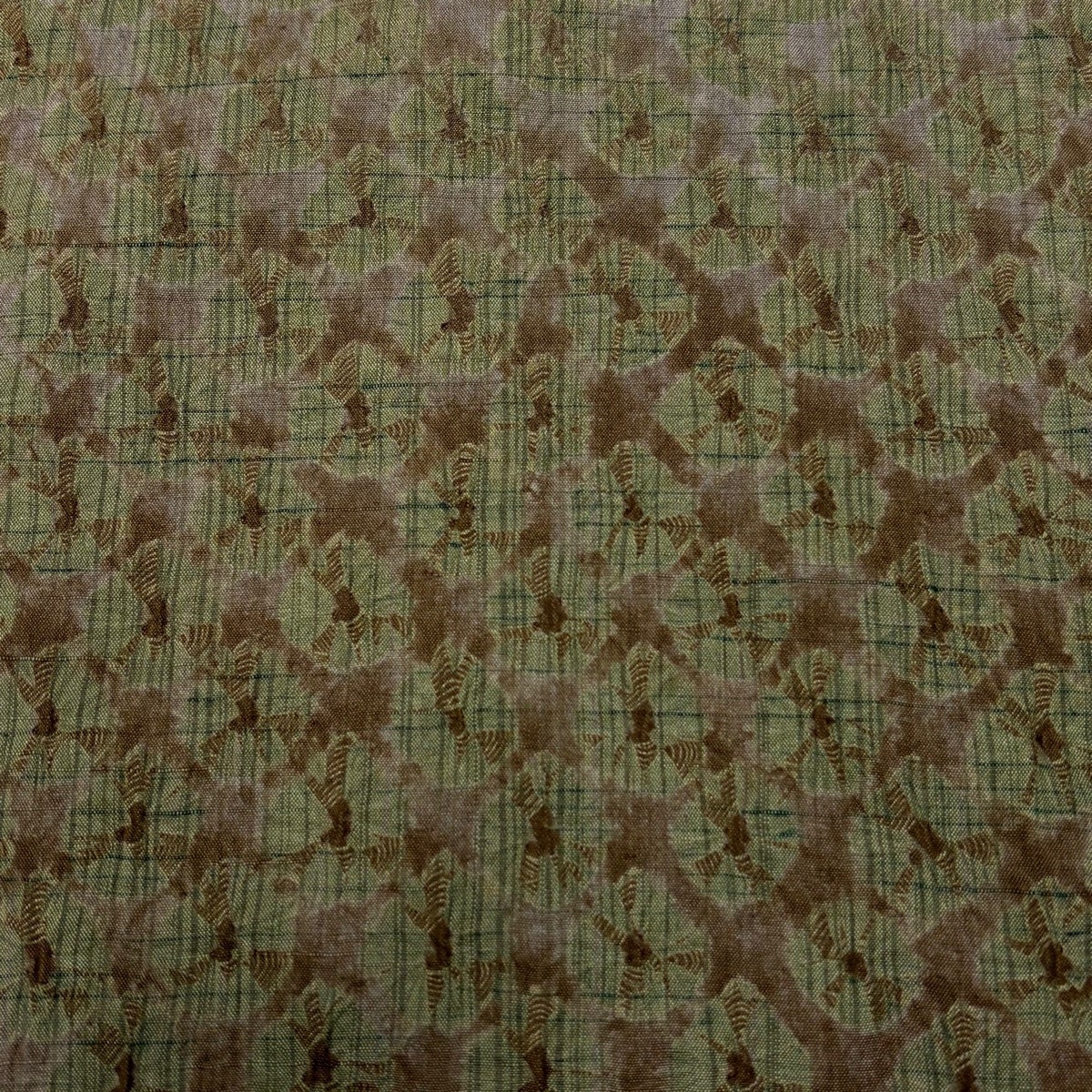 小紋 身丈150.5cm 裄丈66.5cm M 袷 紬地 幾何学 絞り ぼかし 灰緑 正絹 名品