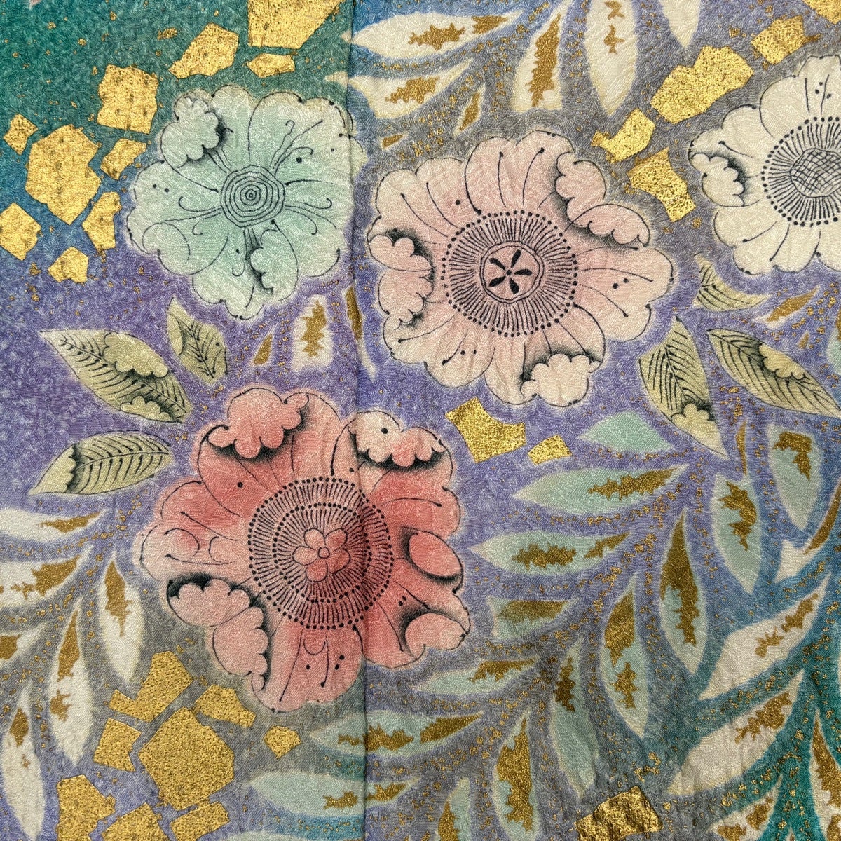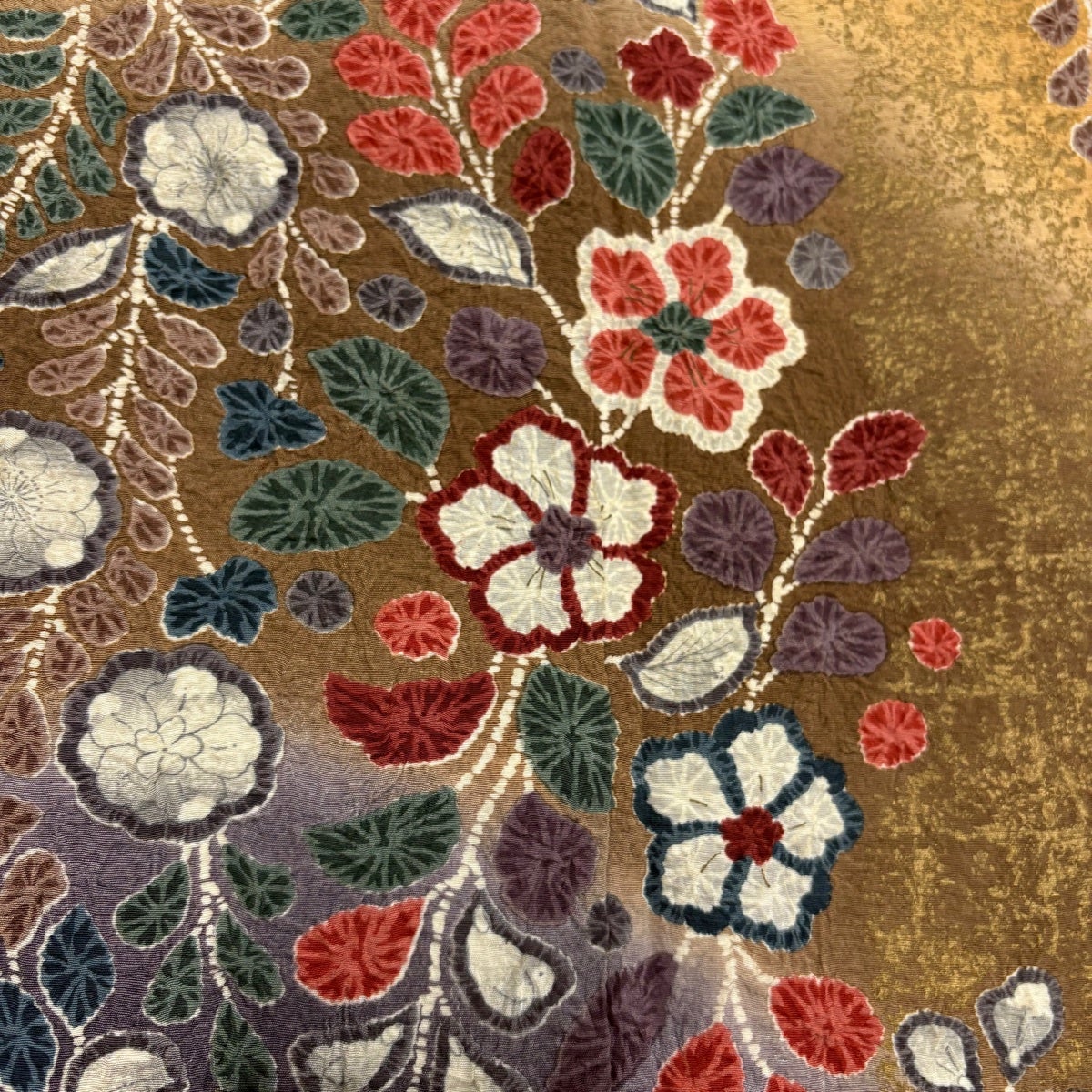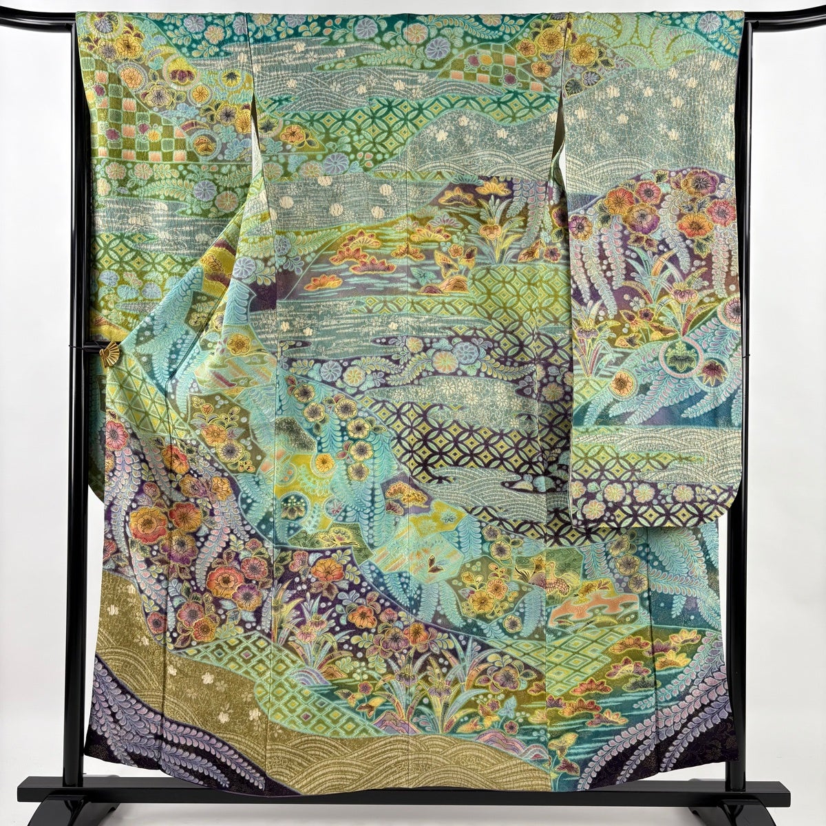振袖 身丈160cm 裄丈65.5cm M 袷 やまと 辻が花柄 金彩 絞り 緑 正絹 名品