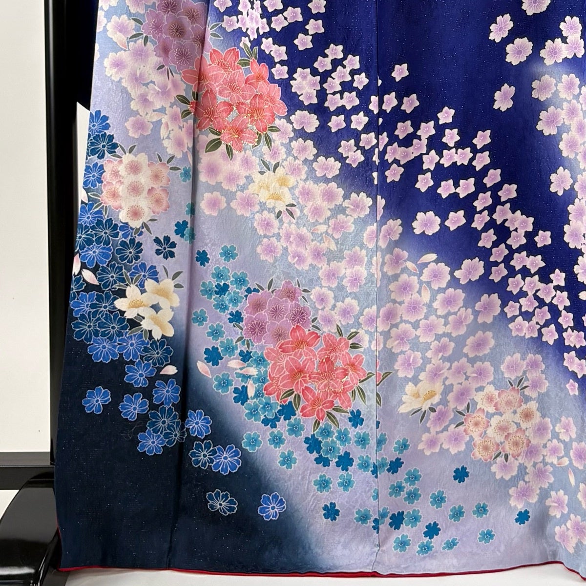 【美品】 振袖 身丈166cm 裄丈67cm M 袷 桜 花びら 銀通し 箔 赤 正絹 名品
