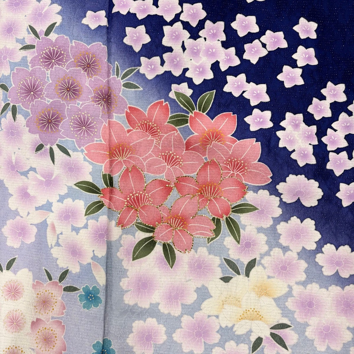 【美品】 小紋 身丈157cm 裄丈63cm S 袷 桜 霞 金糸 ぼかし 青紫 正絹 秀品