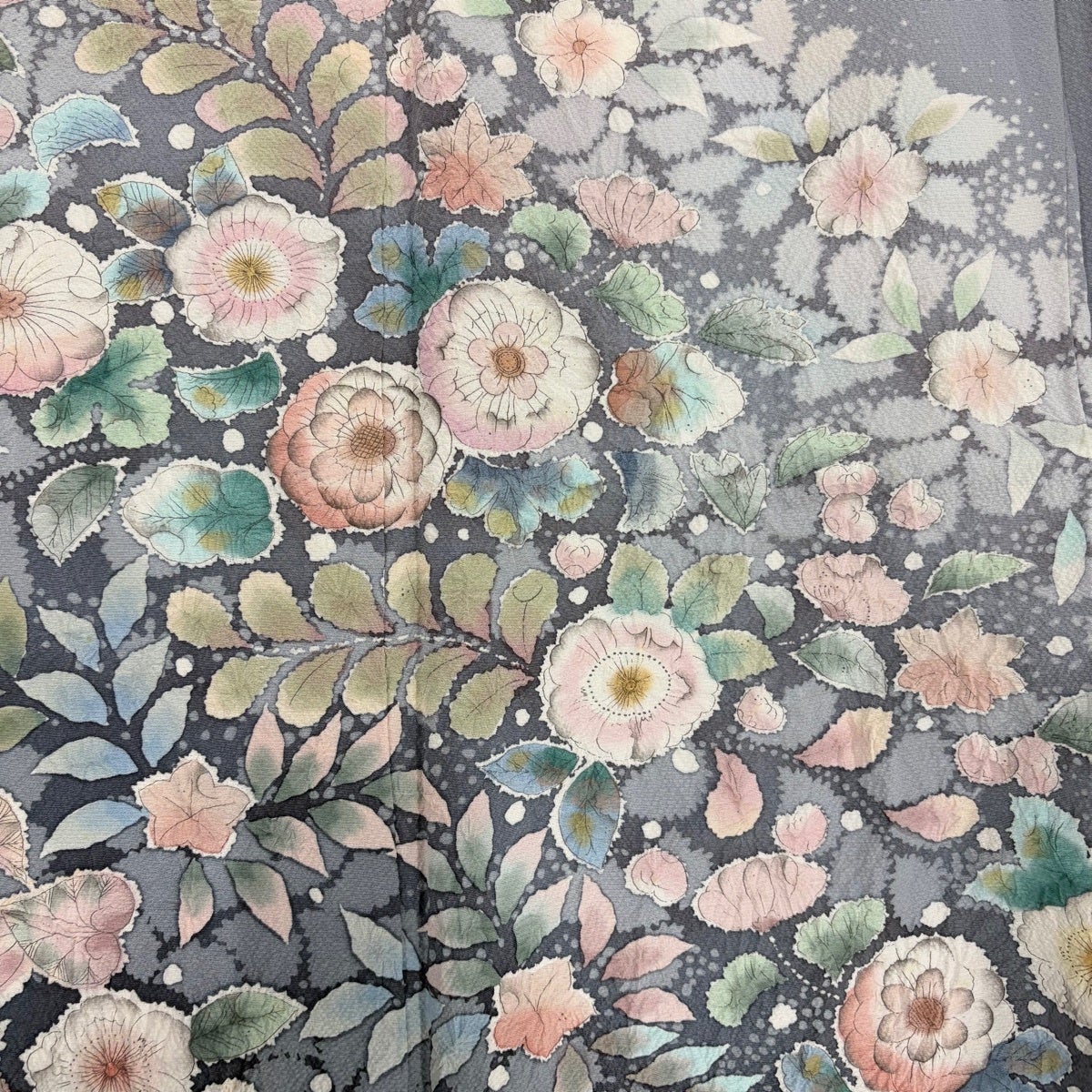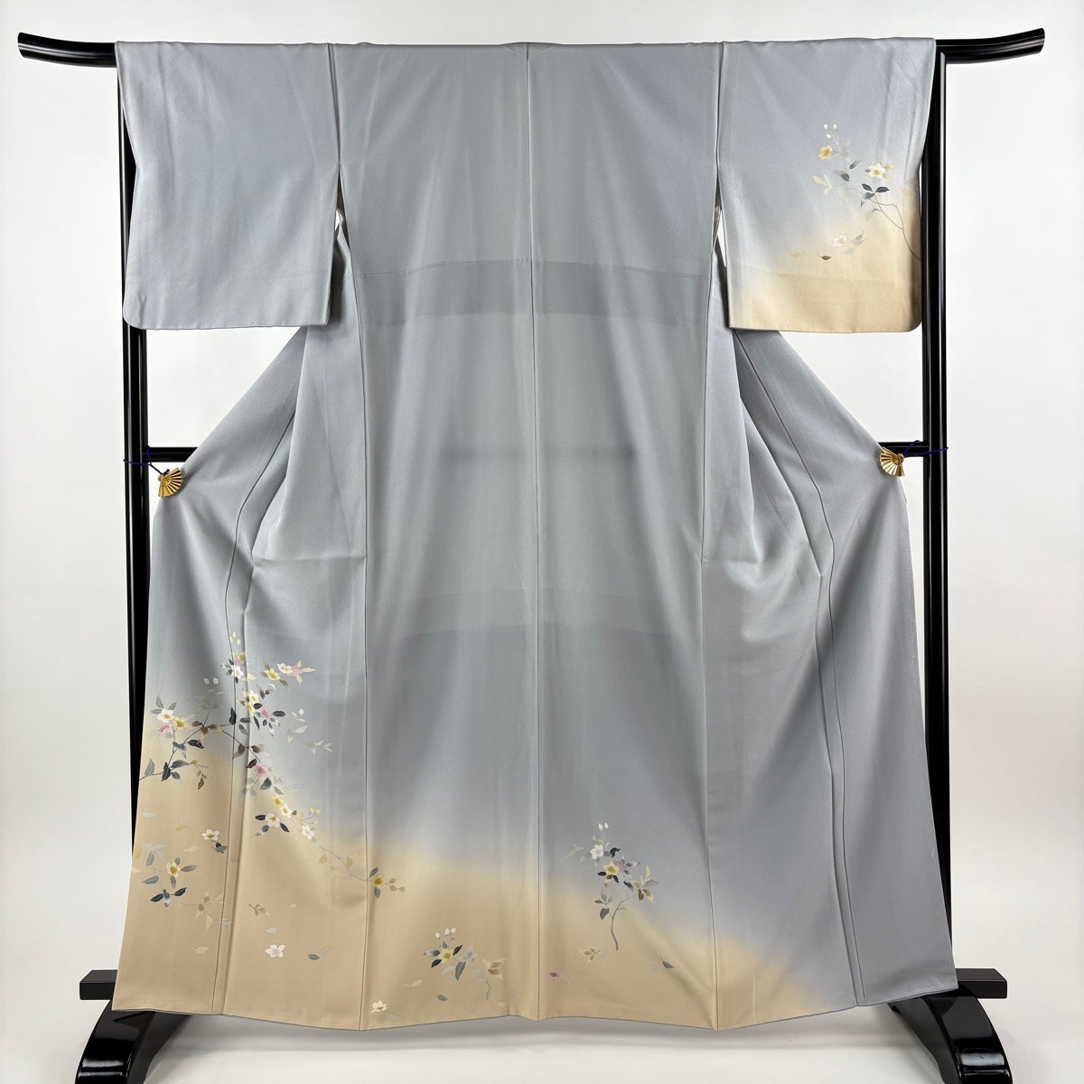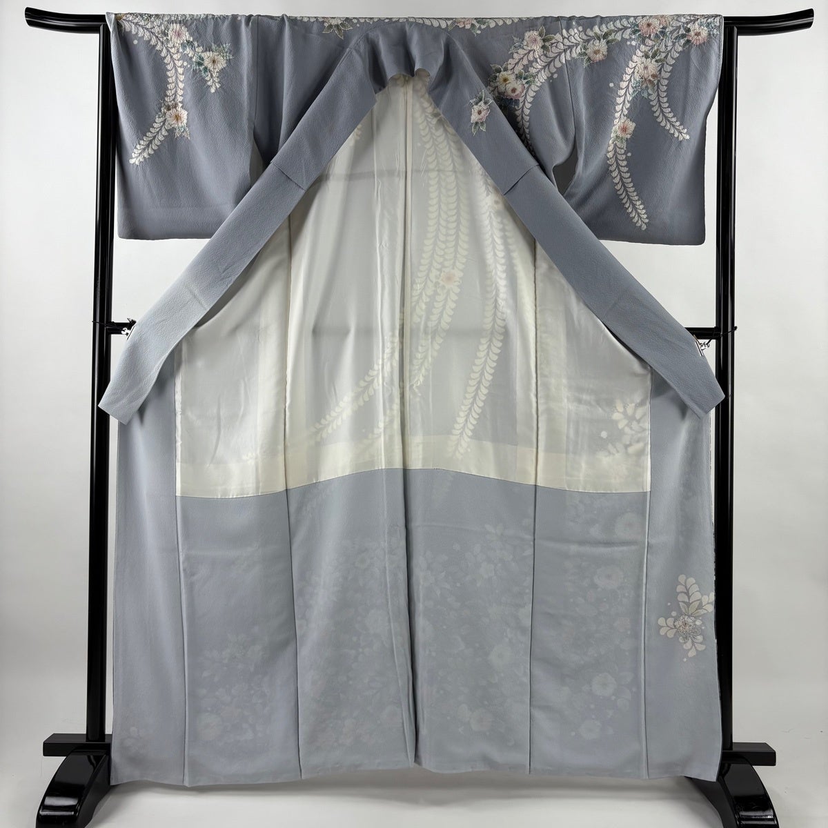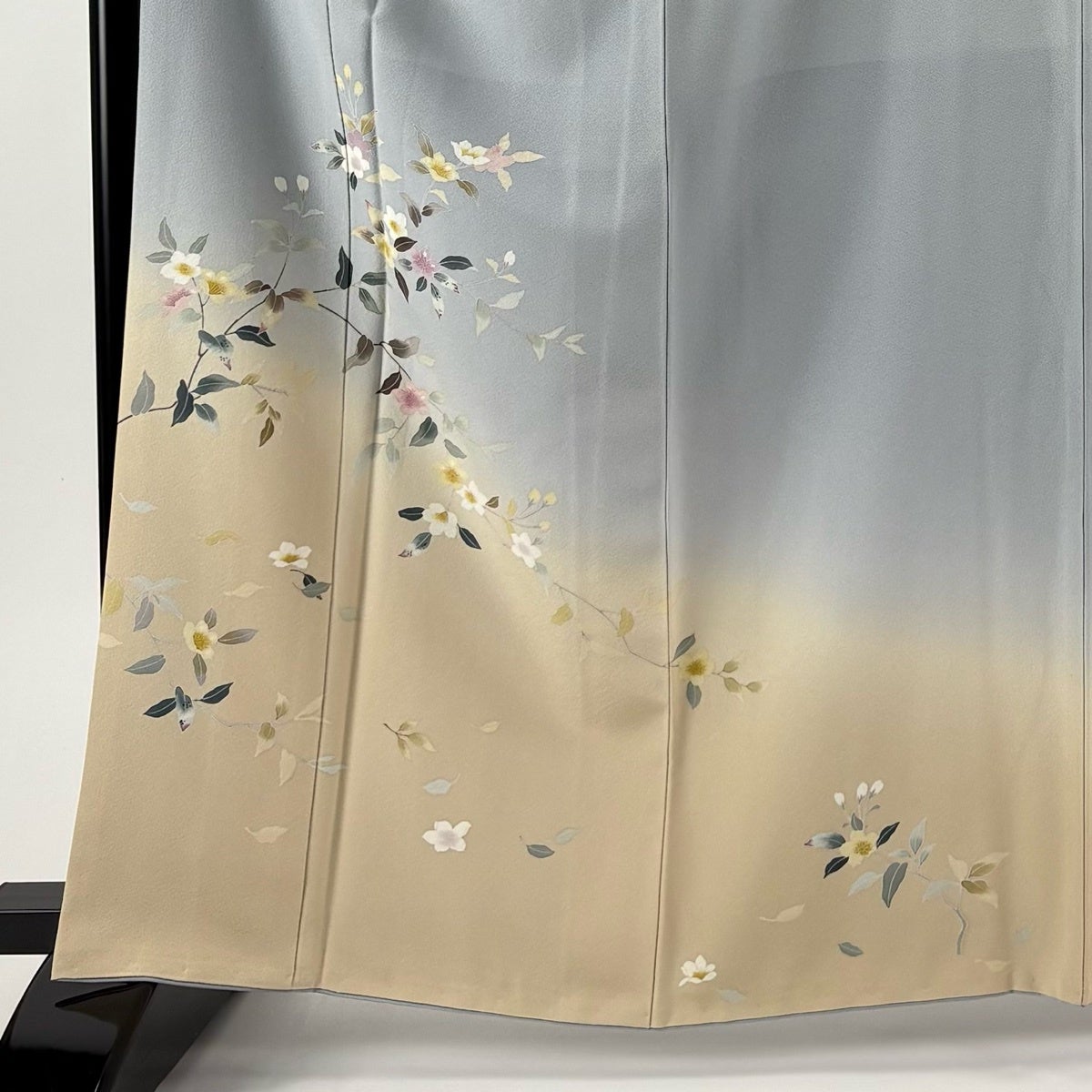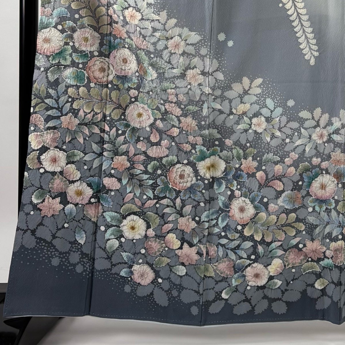 付下げ 身丈164cm 裄丈65.5cm M 袷 枝花 ぼかし 染め分け 青灰色 正絹 秀品