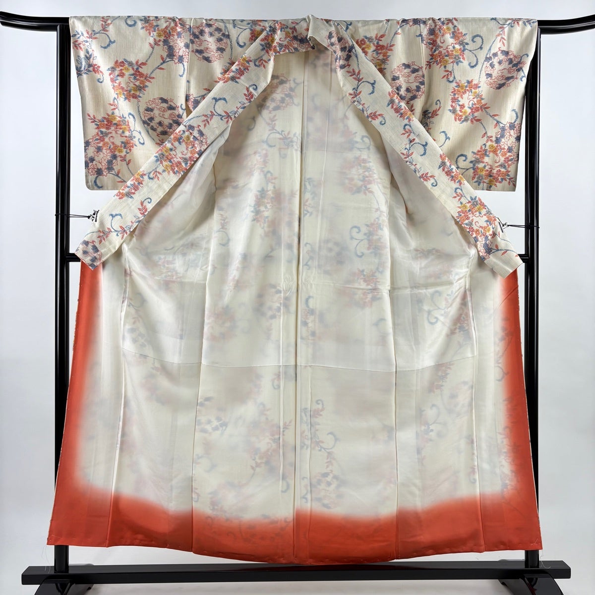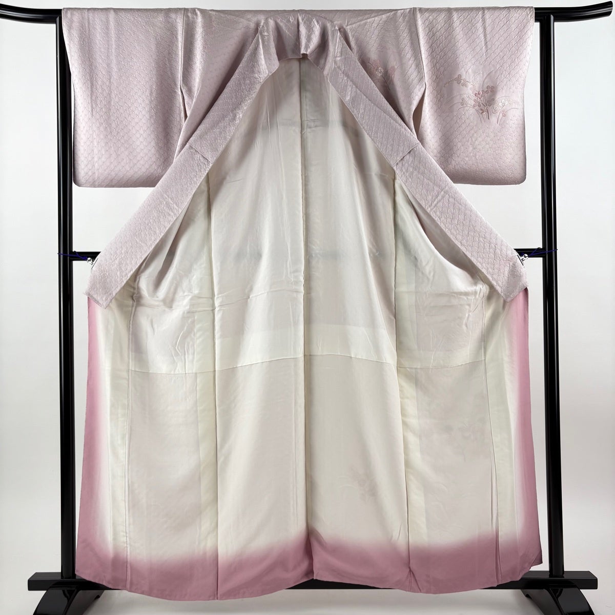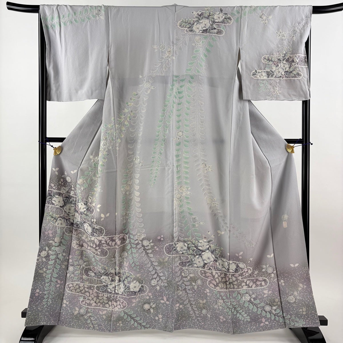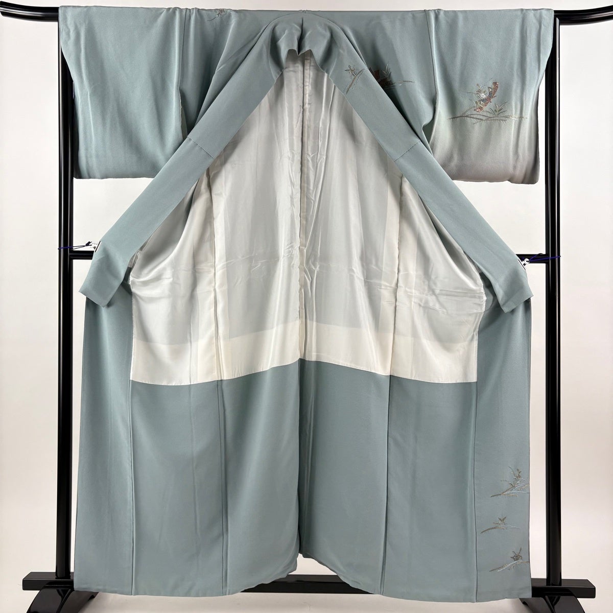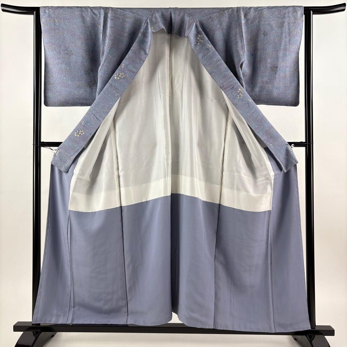 付下げ 身丈164cm 裄丈65.5cm M 袷 枝花 ぼかし 染め分け 青灰色 正絹 秀品