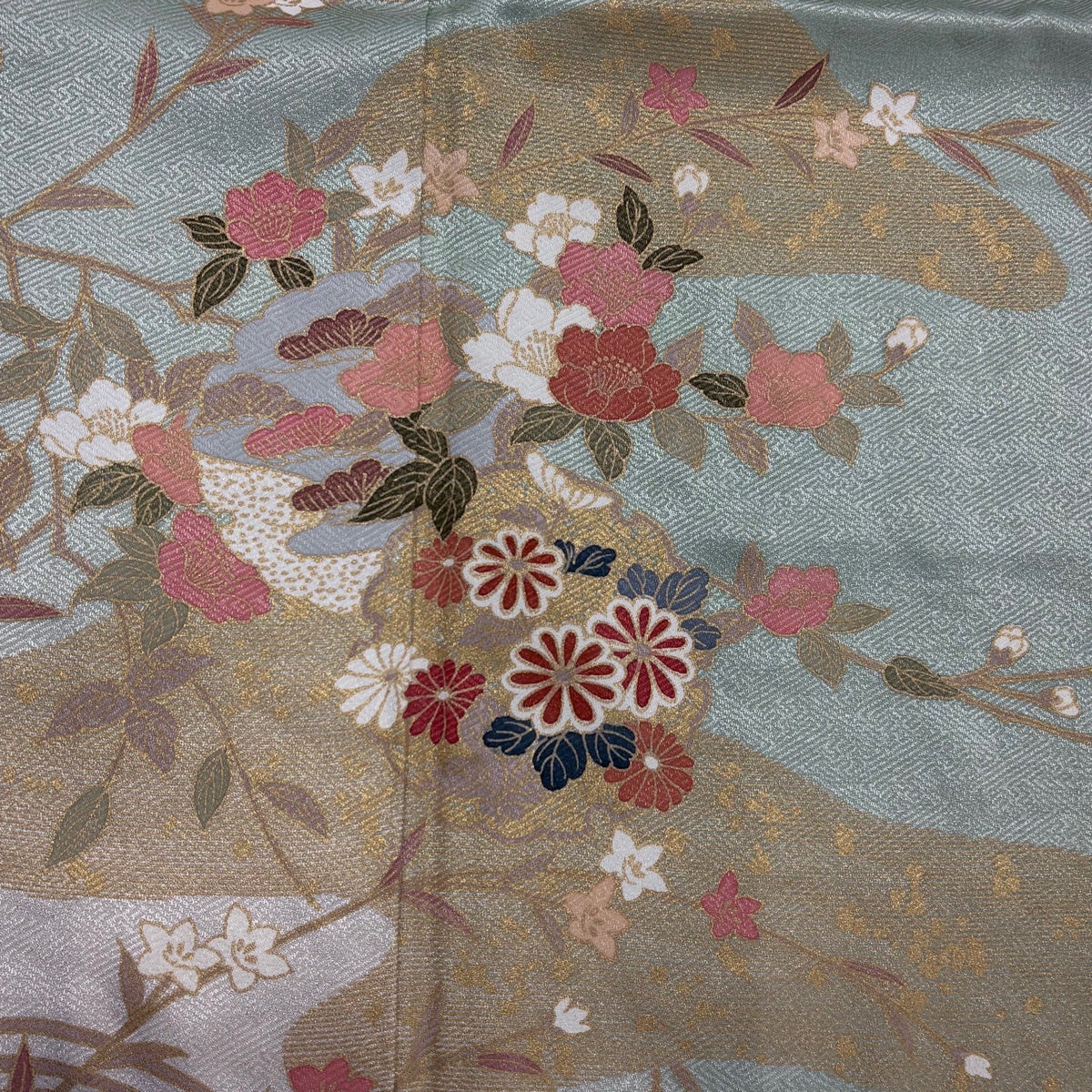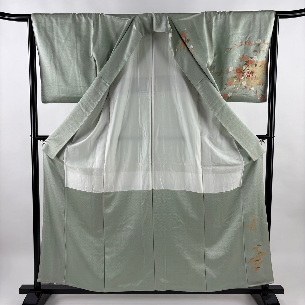 訪問着 身丈159cm 裄丈65.5cm M 袷 雪輪 枝花 金彩 ぼかし 薄緑 正絹 秀品