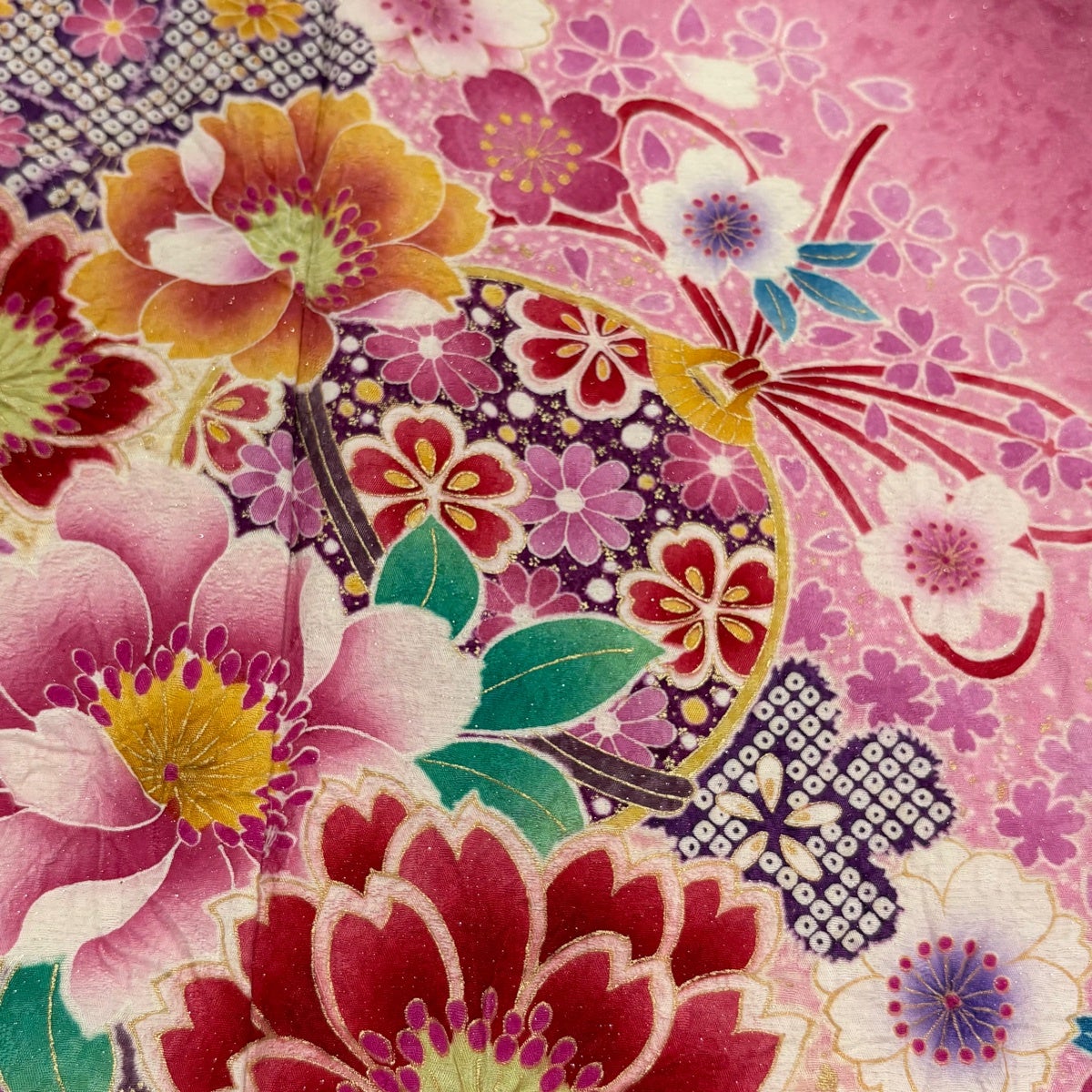 振袖 身丈158.5cm 裄丈66cm M 袷 桜 手鞠 金彩 ぼかし ピンク 正絹 名品