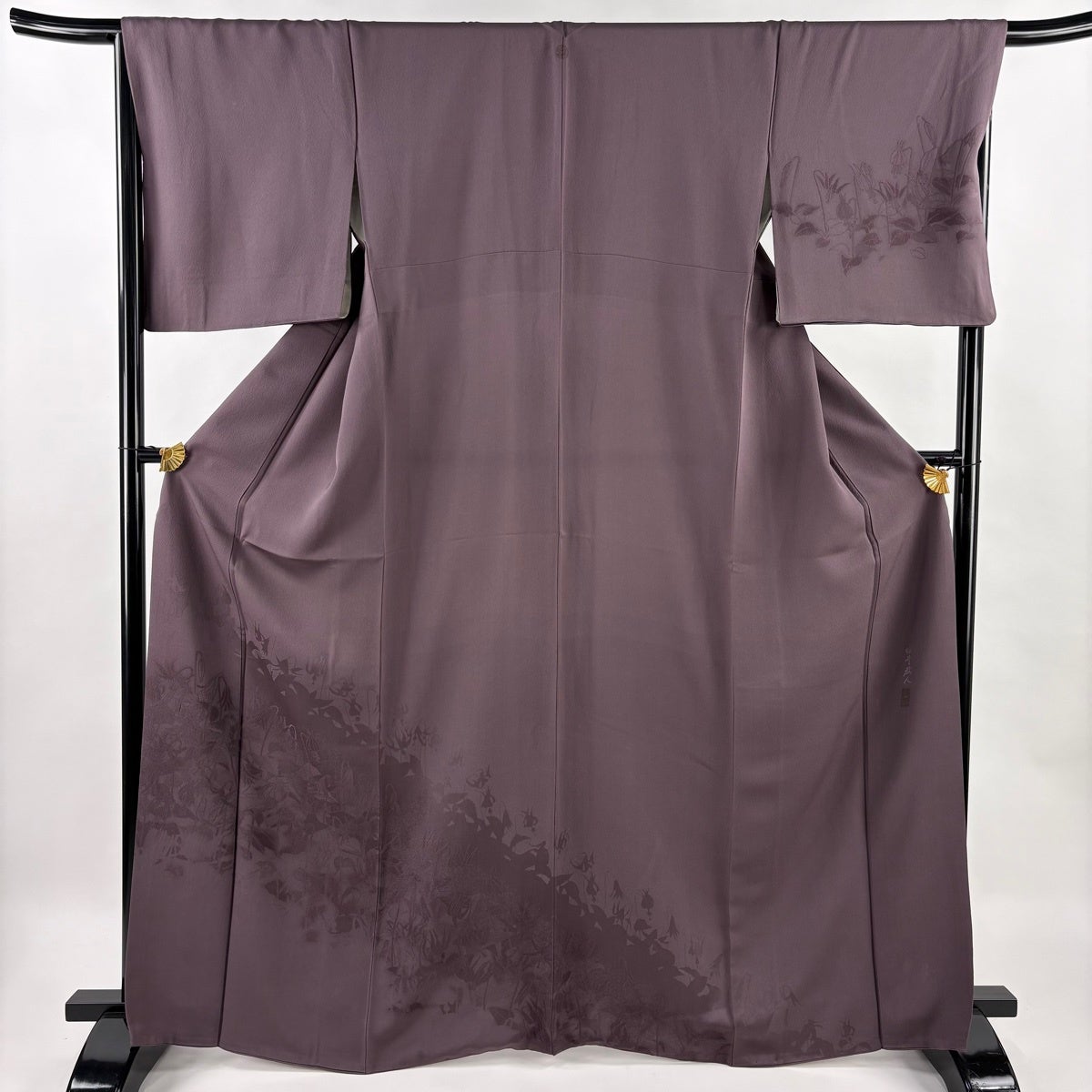 付下げ 身丈167cm 裄丈67cm M 袷 坂井教人 落款あり 草花 灰紫 正絹 名品 一つ紋