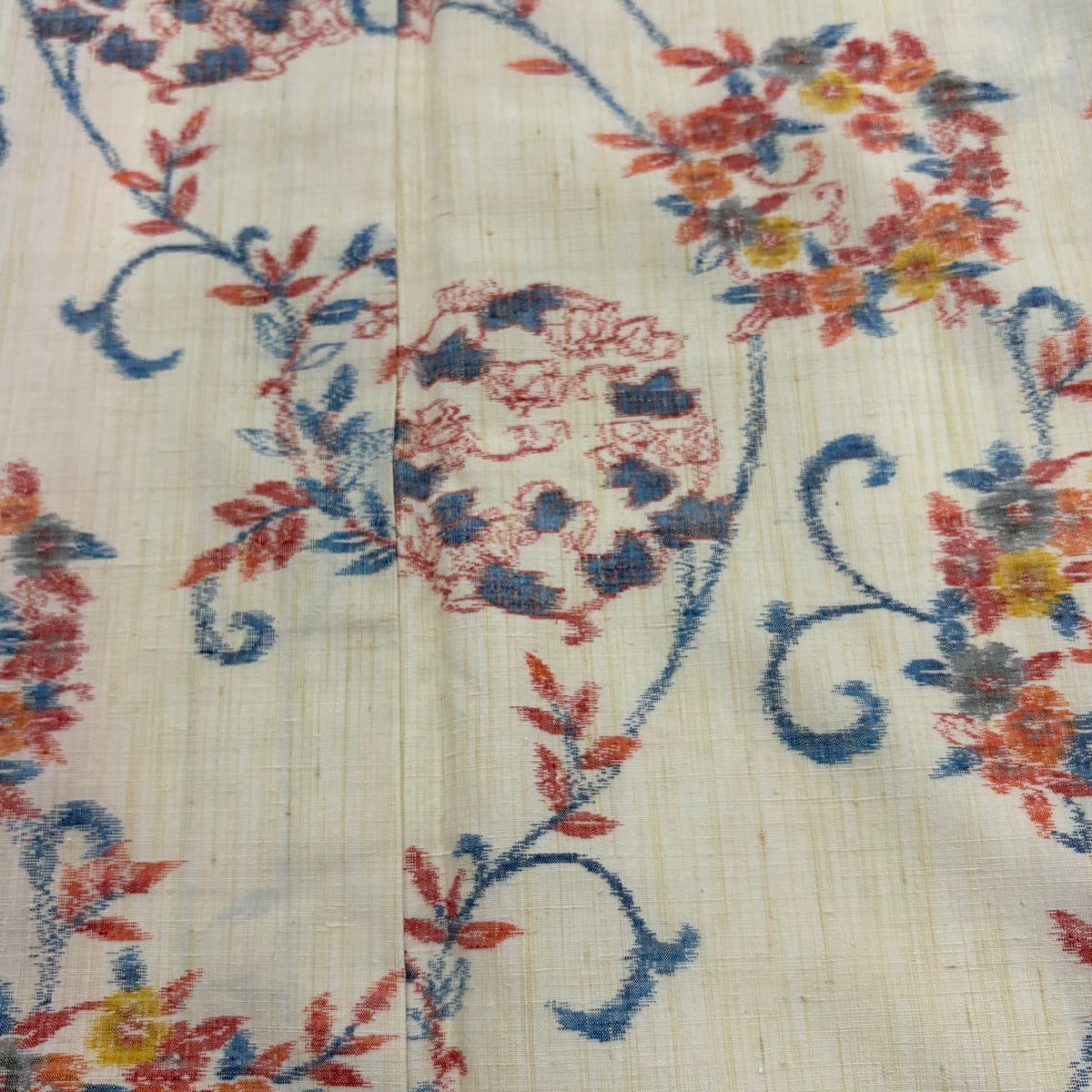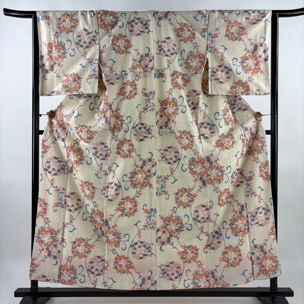 【美品】 紬 身丈158.5cm 裄丈65cm M 袷 証紙あり 花唐草 クリーム 正絹 名品