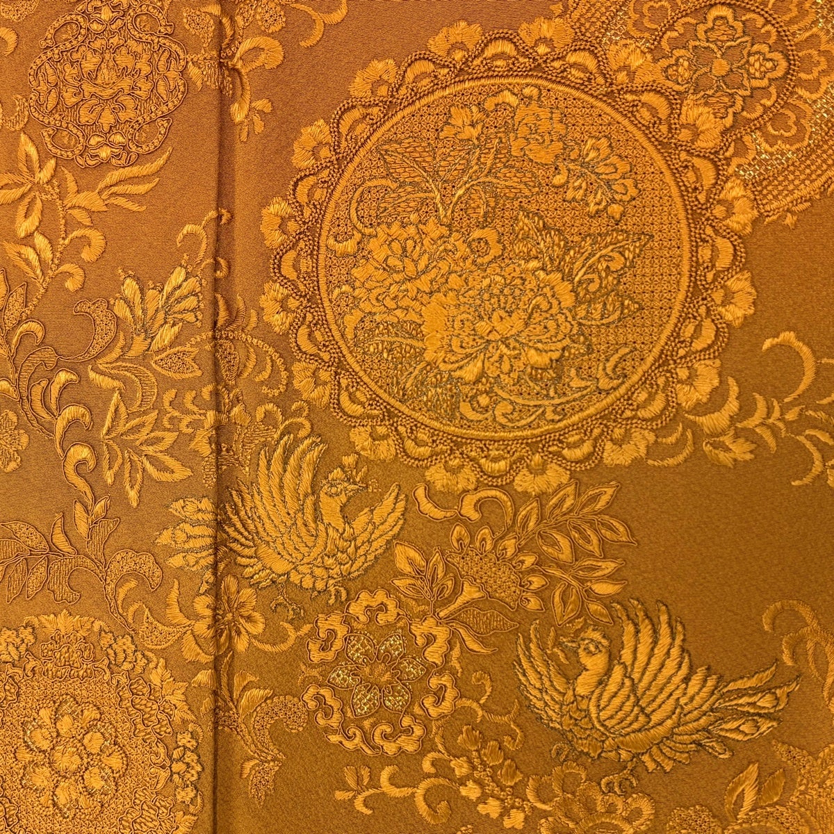 訪問着 身丈166cm 裄丈68cm L 袷 鳳凰 花唐草 薄オレンジ 正絹 名品 一つ紋
