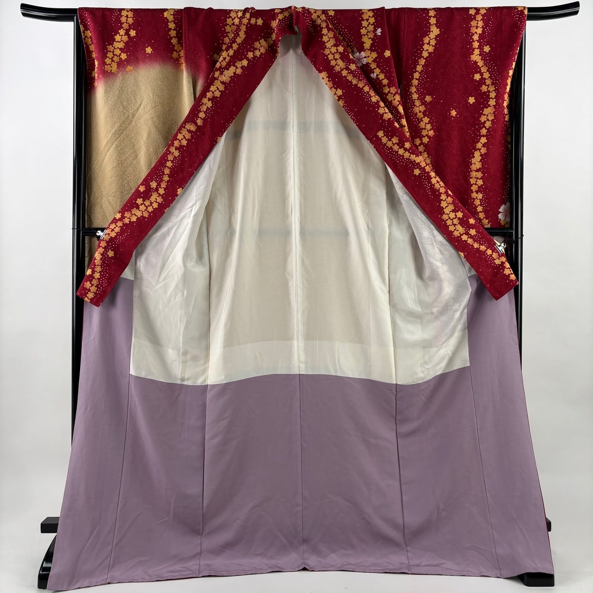 振袖 身丈166cm 裄丈67.5cm L 袷 桜 梅 箔 金通し 黒 正絹 逸品