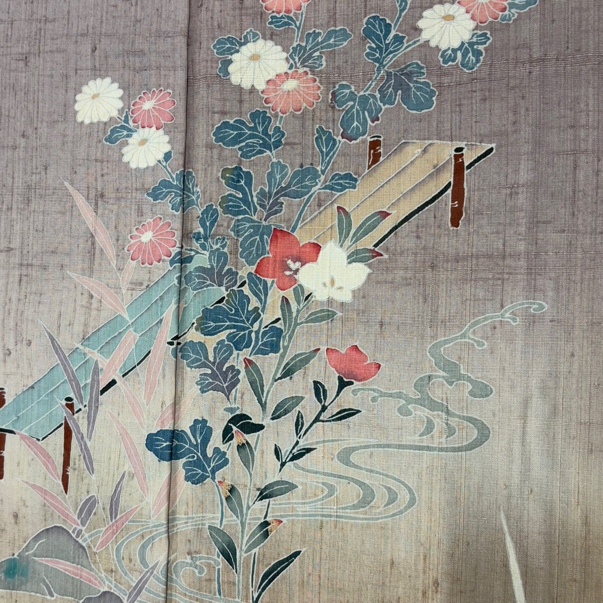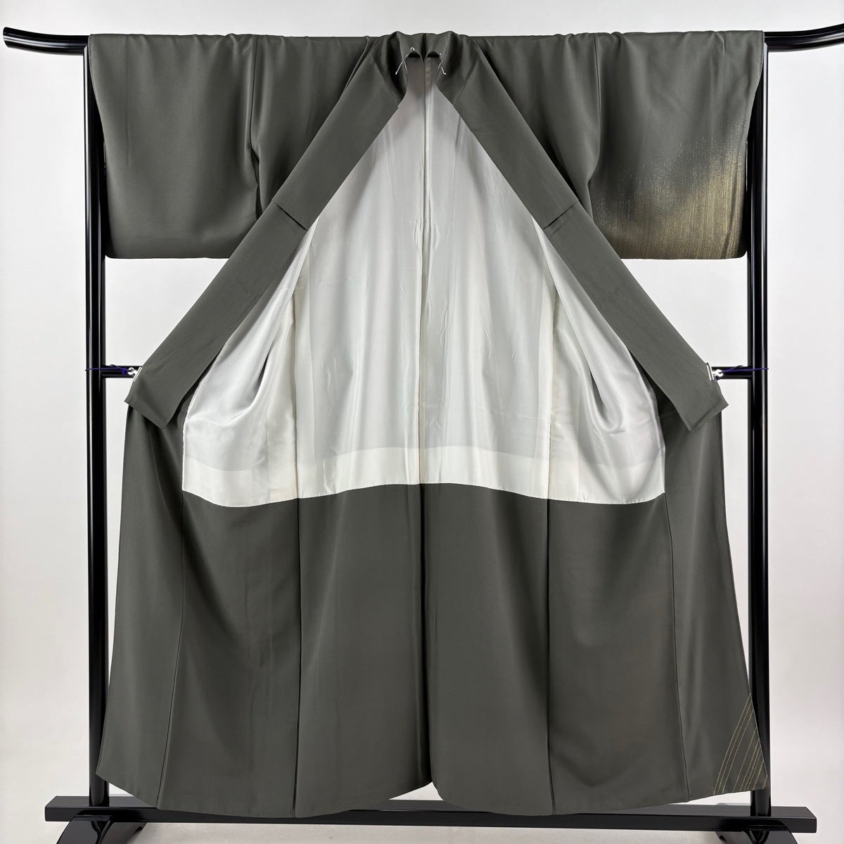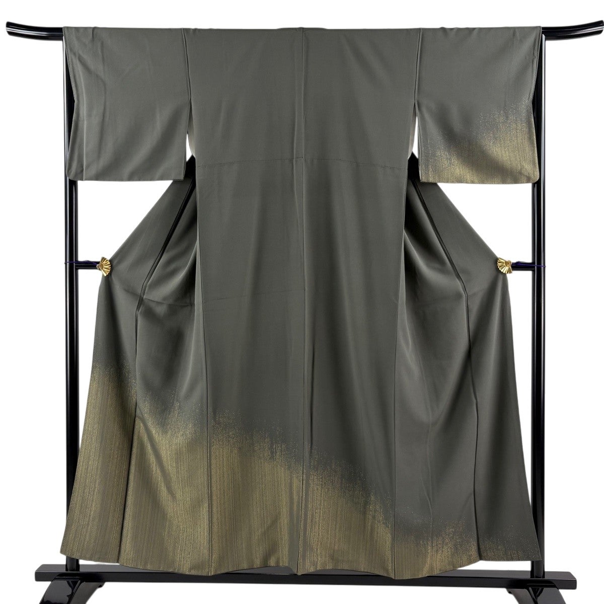 訪問着 身丈154cm 裄丈66cm M 袷 萩 間垣 刺繍 金糸 灰茶 正絹 秀品