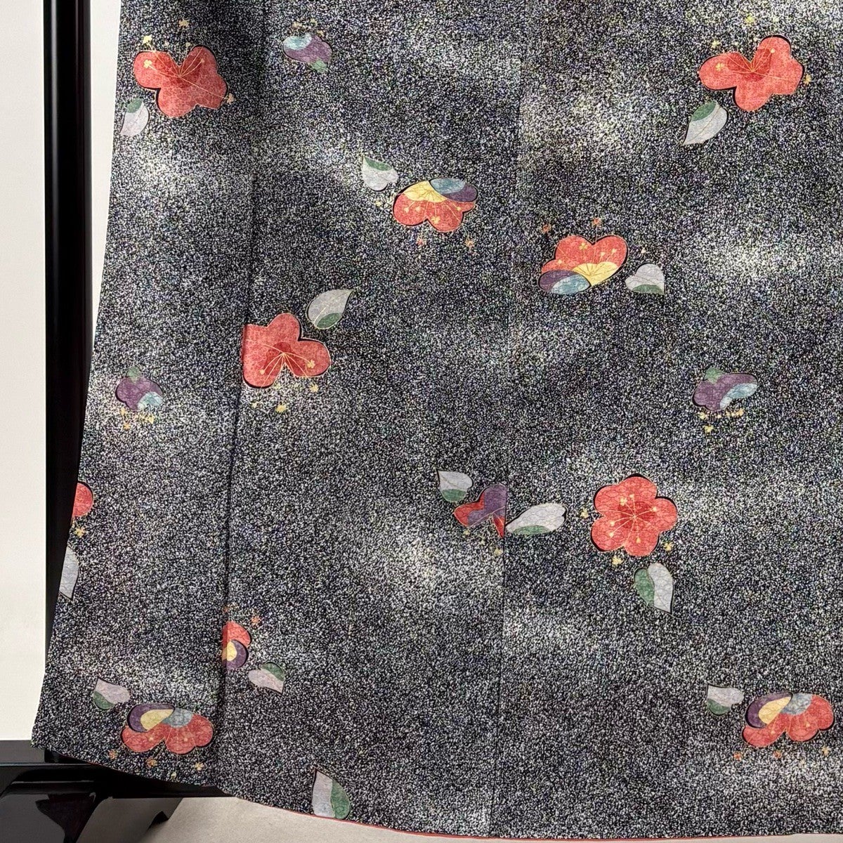 小紋 身丈154.5cm 裄丈63cm S 袷 桜 花びら 金彩 青灰色 正絹 秀品