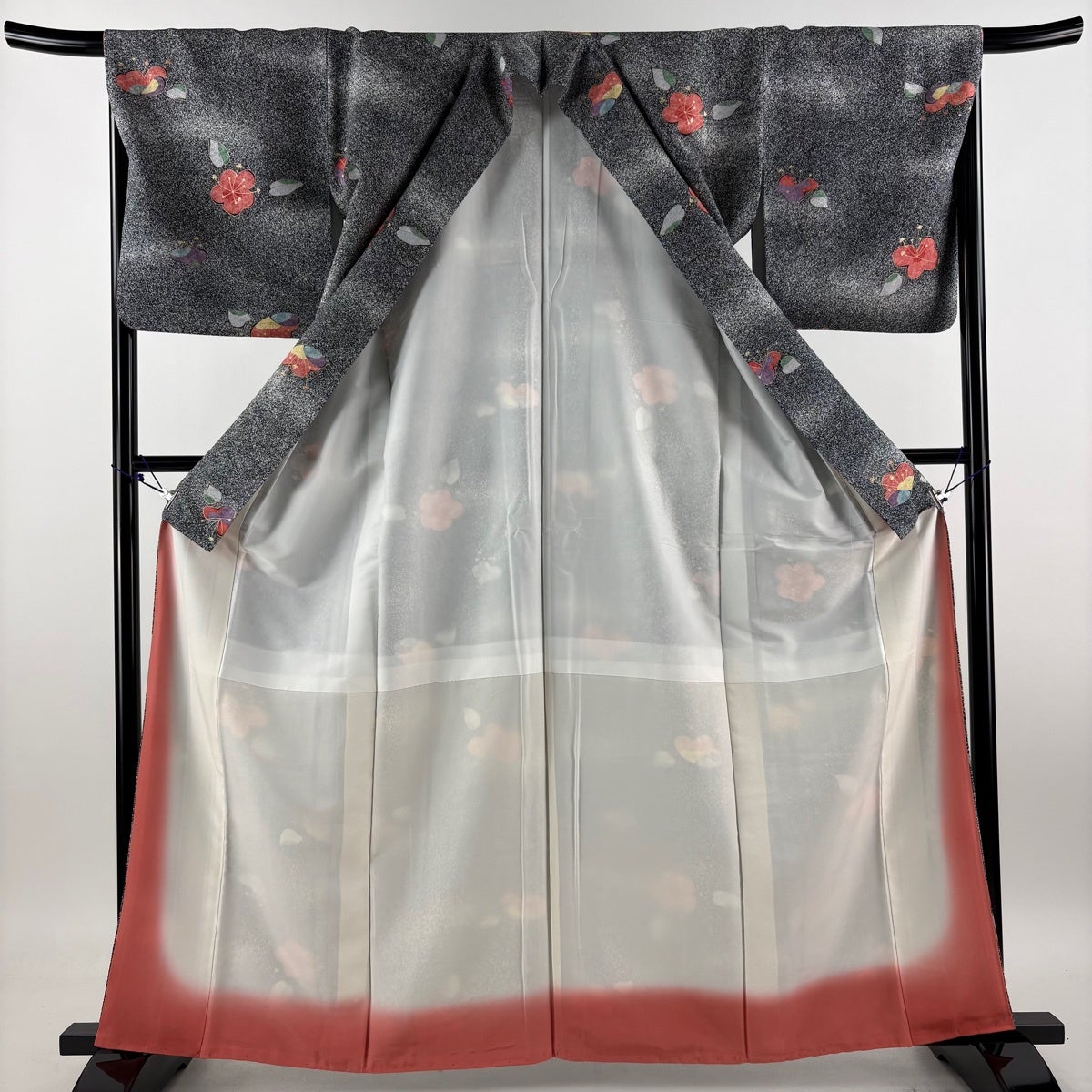振袖 身丈163cm 裄丈70cm L 袷 扇 草花 金銀彩 ぼかし 赤 正絹 秀品
