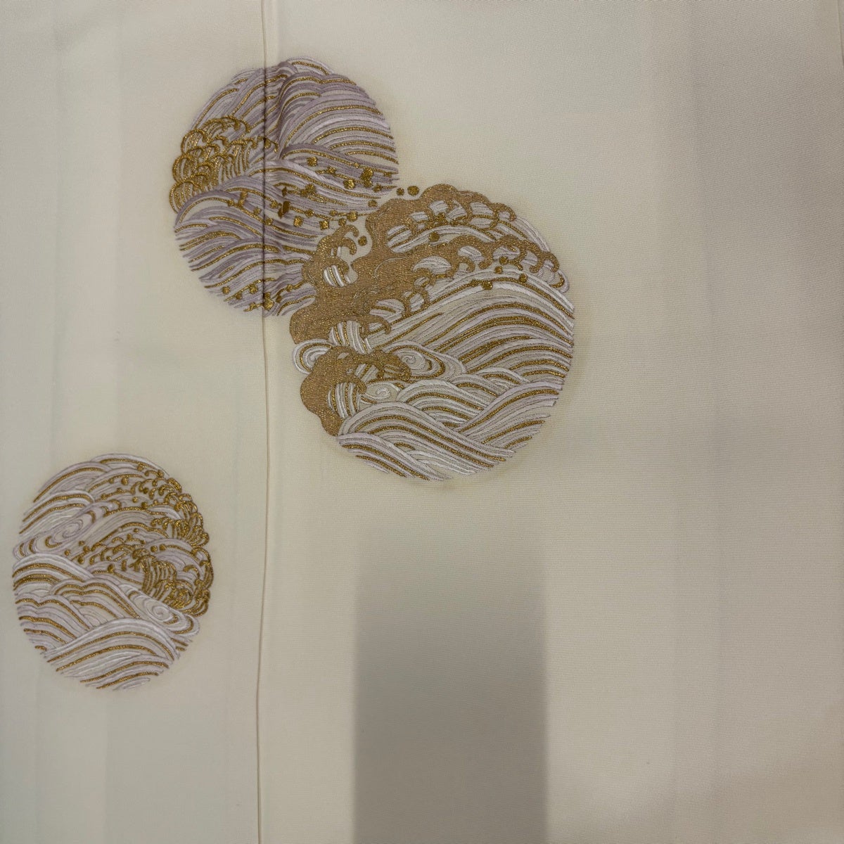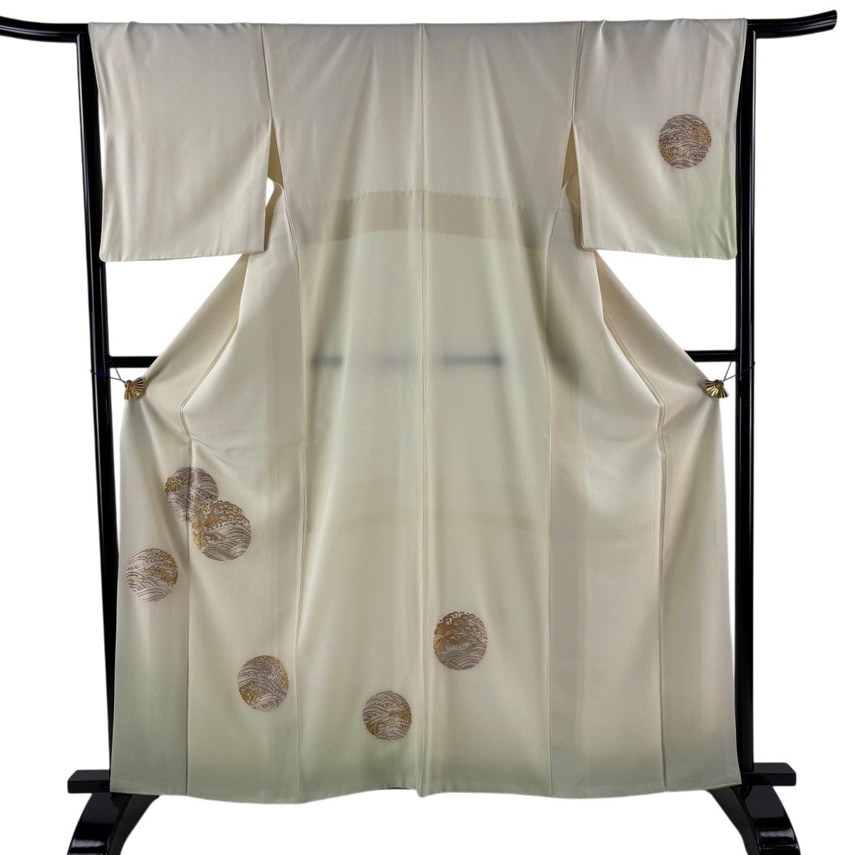 振袖 身丈166.5cm 裄丈65cm M 袷 菊 蝶 金糸 金彩 クリーム 正絹 秀品