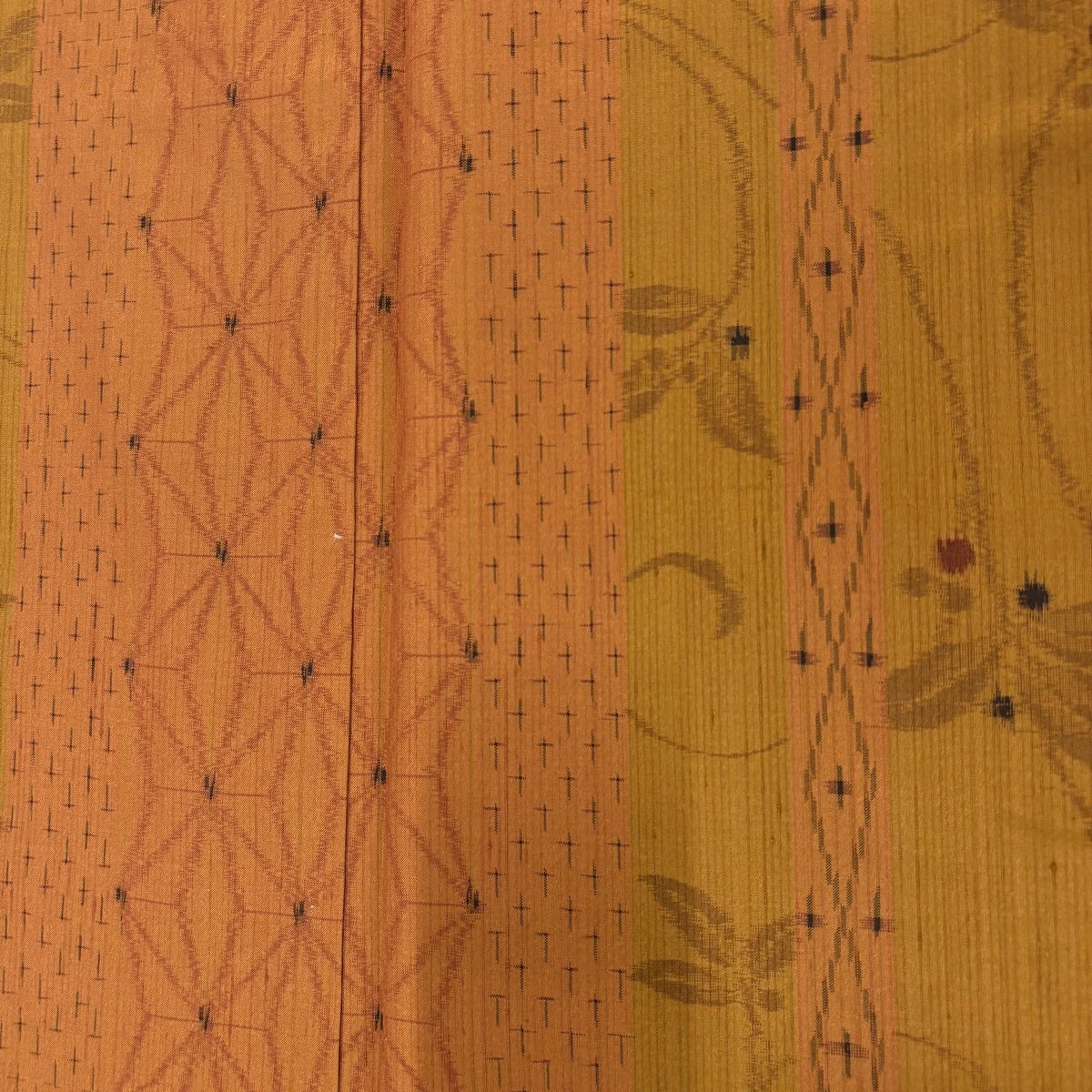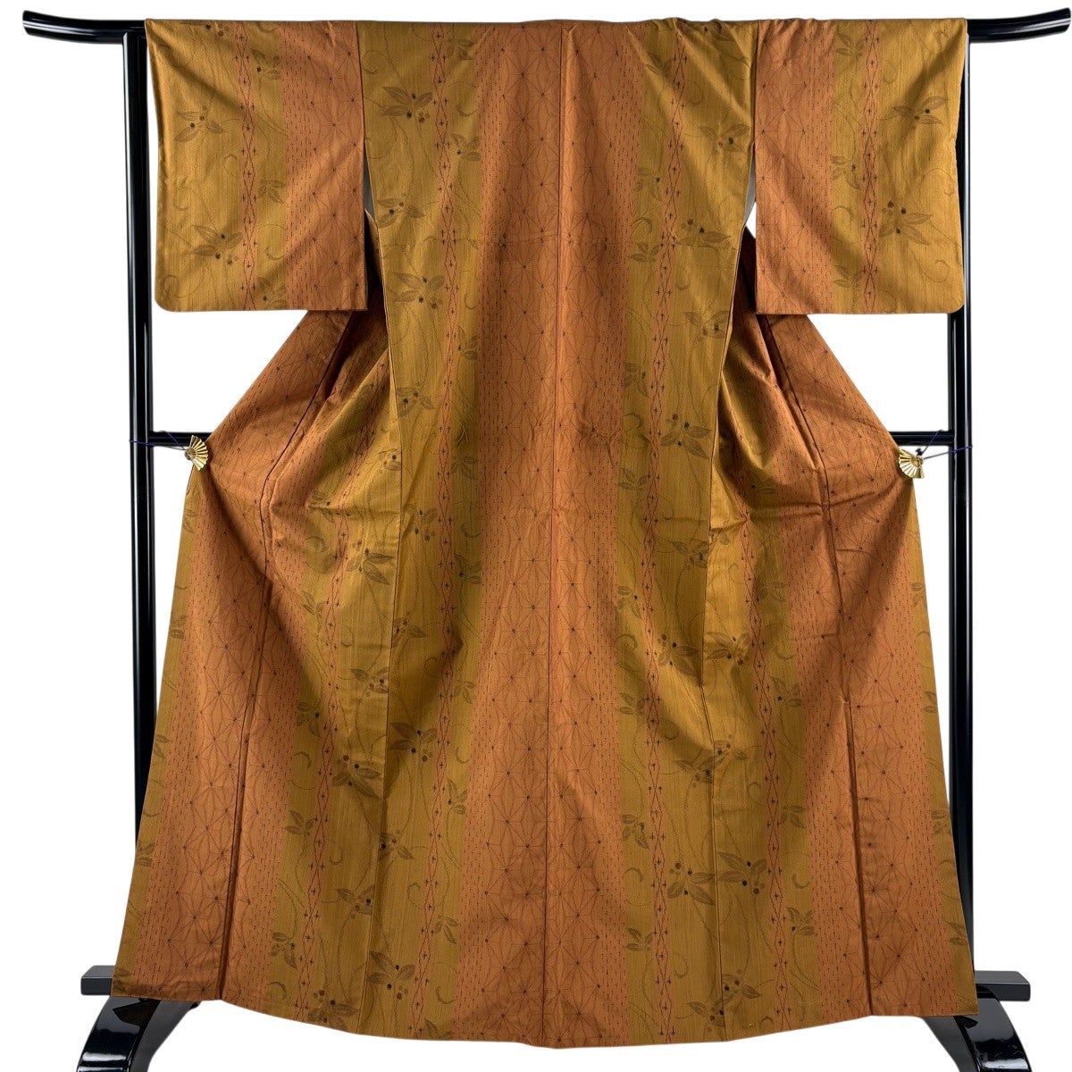 【美品】 紬 身丈161cm 裄丈64cm M 袷 幾何学 薄オレンジ 正絹 秀品