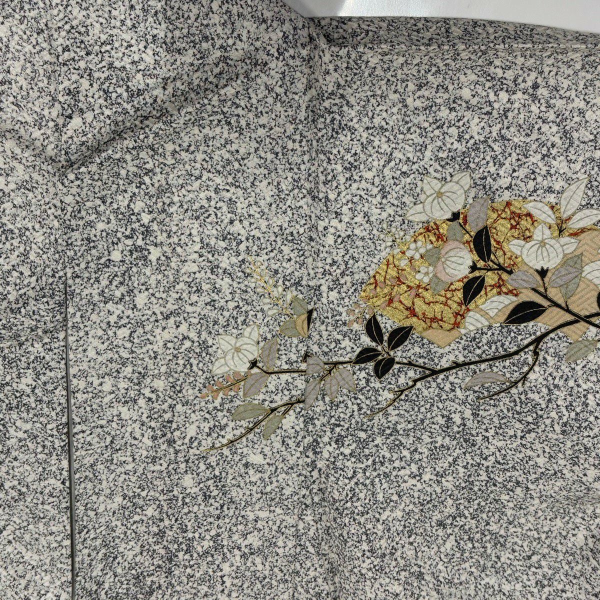付下げ 身丈161cm 裄丈66cm M 袷 扇面 菊 刺繍 金彩 灰色 正絹 秀品