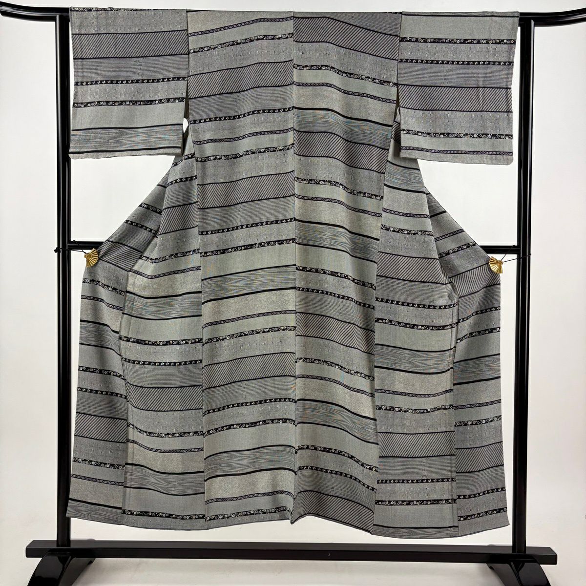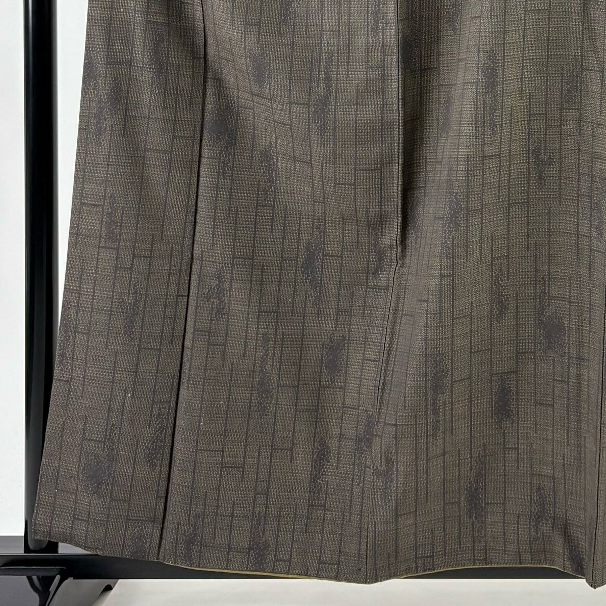 【美品】 紬 身丈161.5cm 裄丈62.5cm S 袷 幾何学模様 灰色 正絹 優品