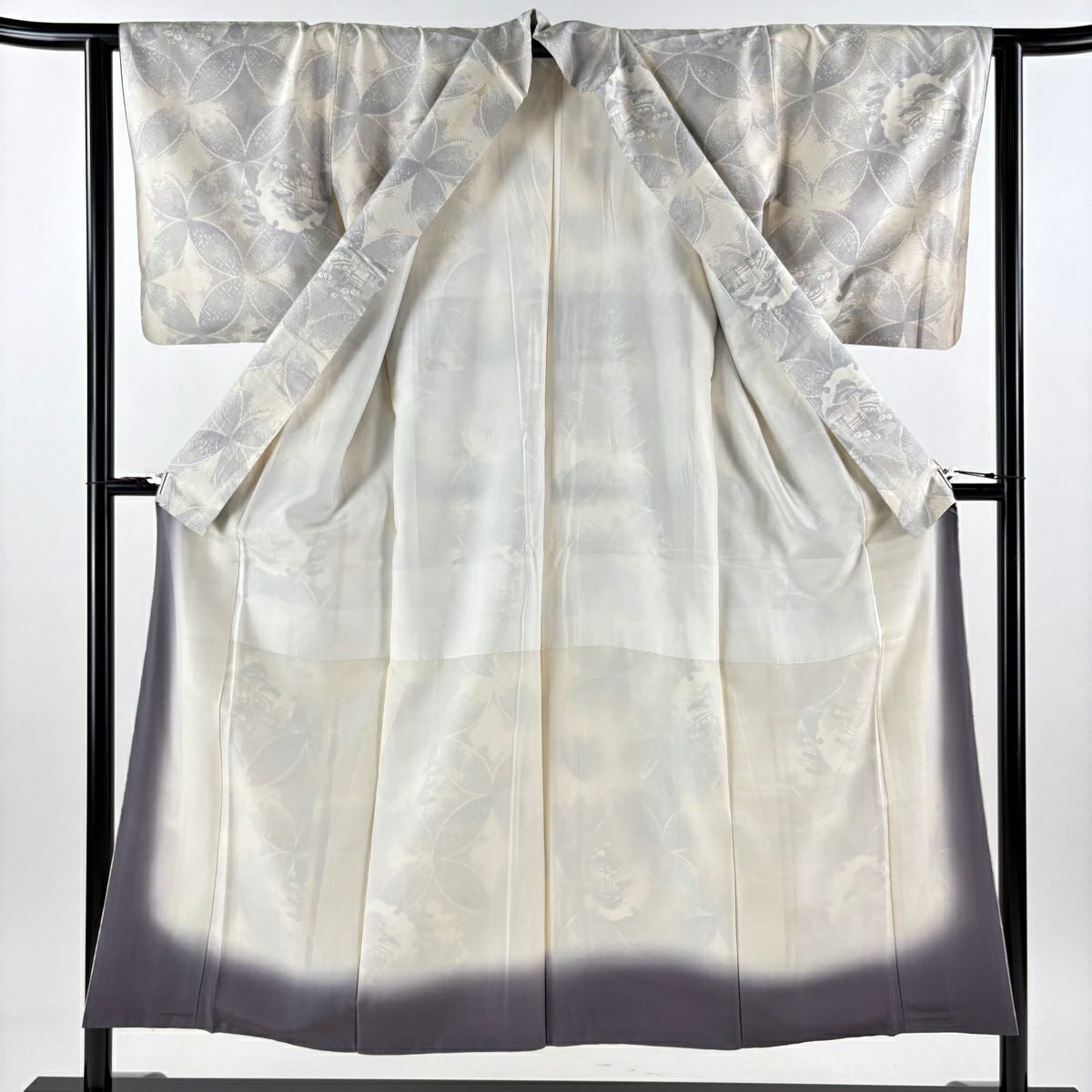 付下げ 身丈157.5cm 裄丈64cm M 袷 ぼかし柄 灰色 正絹 秀品 一つ紋