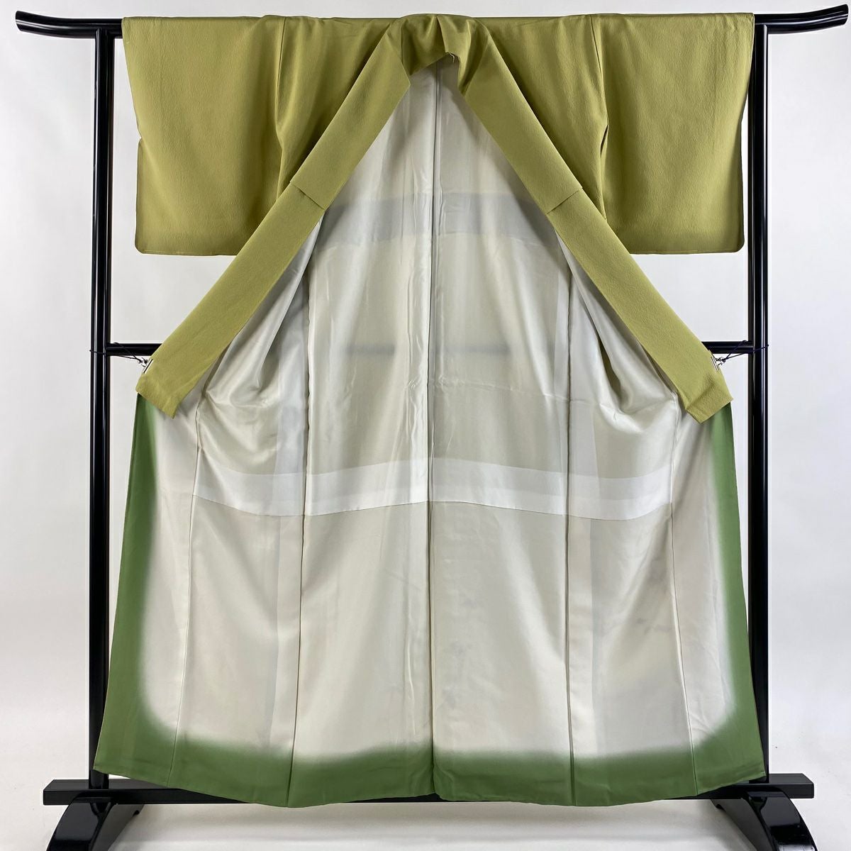 訪問着 身丈161cm 裄丈69cm L 袷 扇面 蝶 金彩 絞り 灰緑 正絹 名品