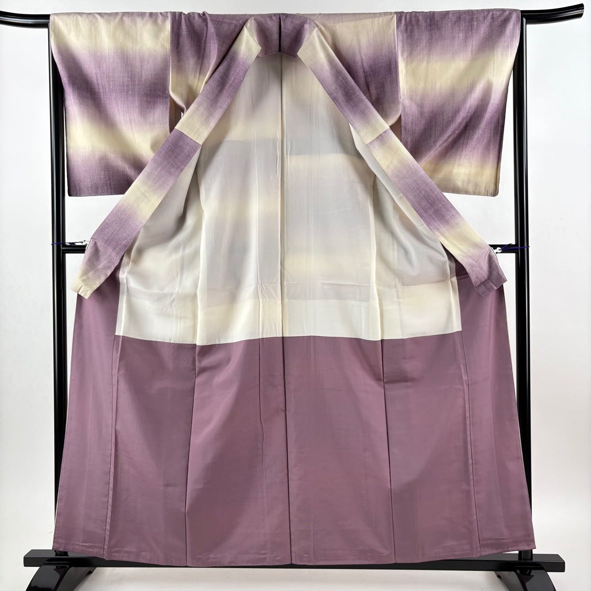 付下げ 身丈156.5cm 裄丈65.5cm M 袷 落款あり 横縞 霞 ぼかし 灰紫 正絹 秀品