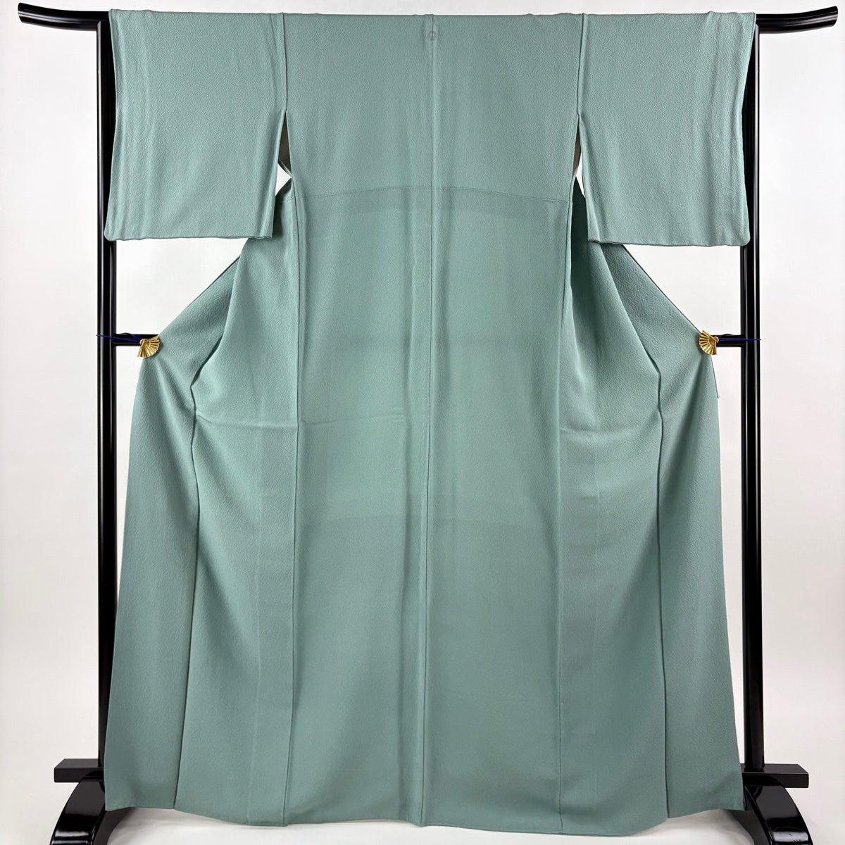 色無地 身丈169cm 裄丈65.5cm M 袷 花井幸子 落款あり 薄緑 正絹 秀品 一つ紋